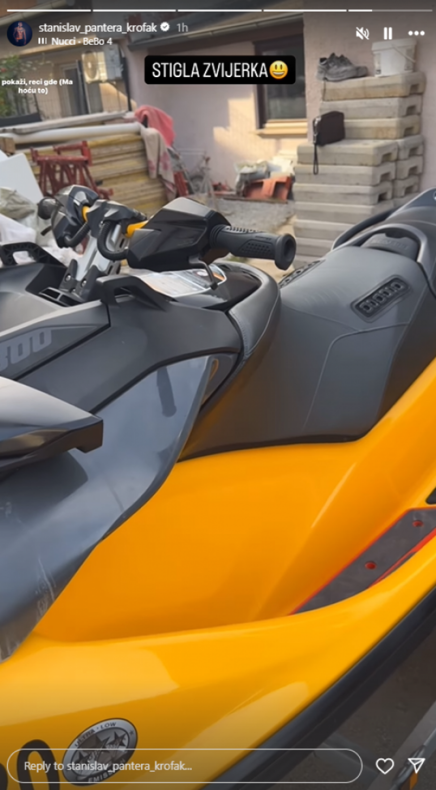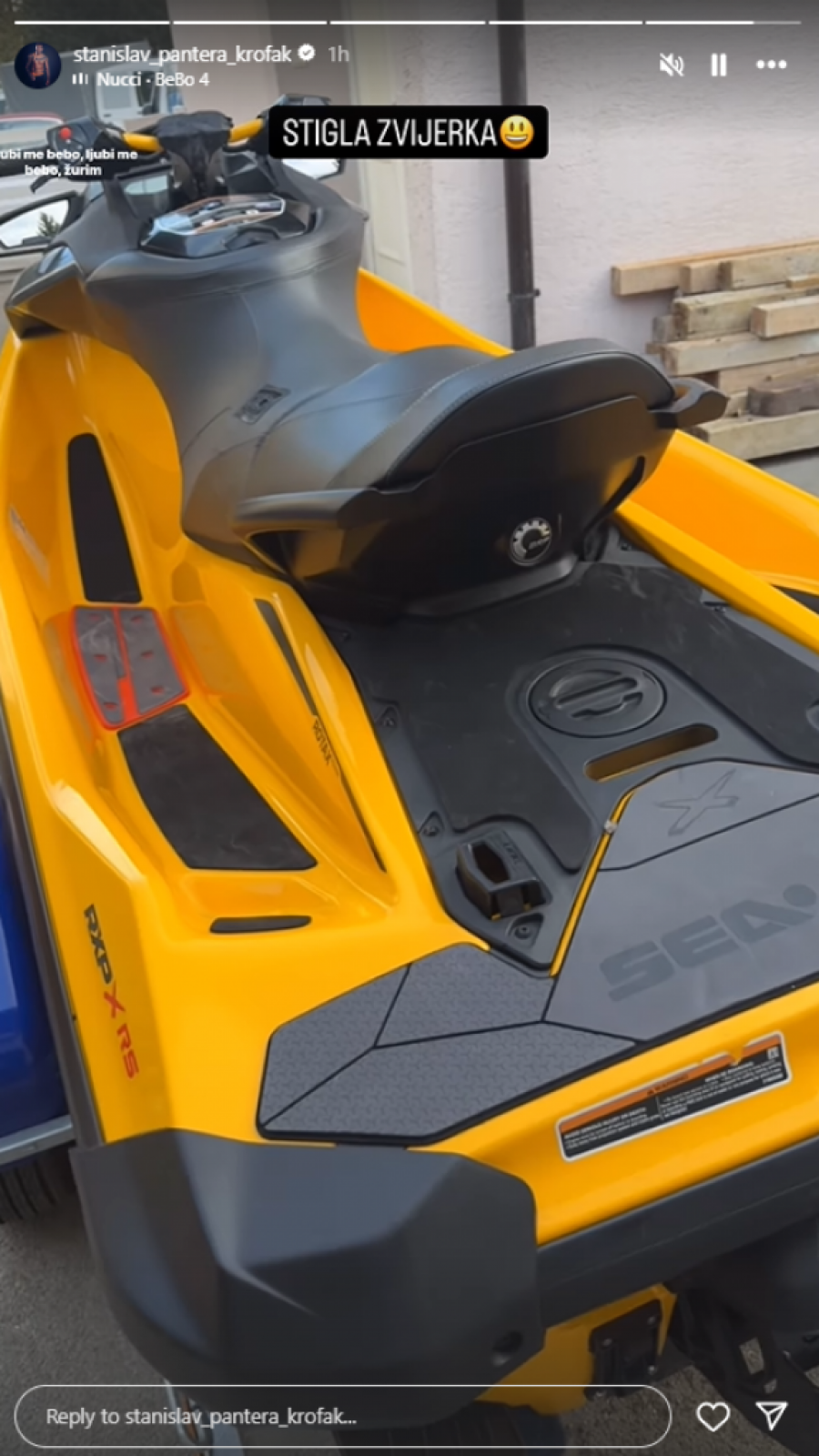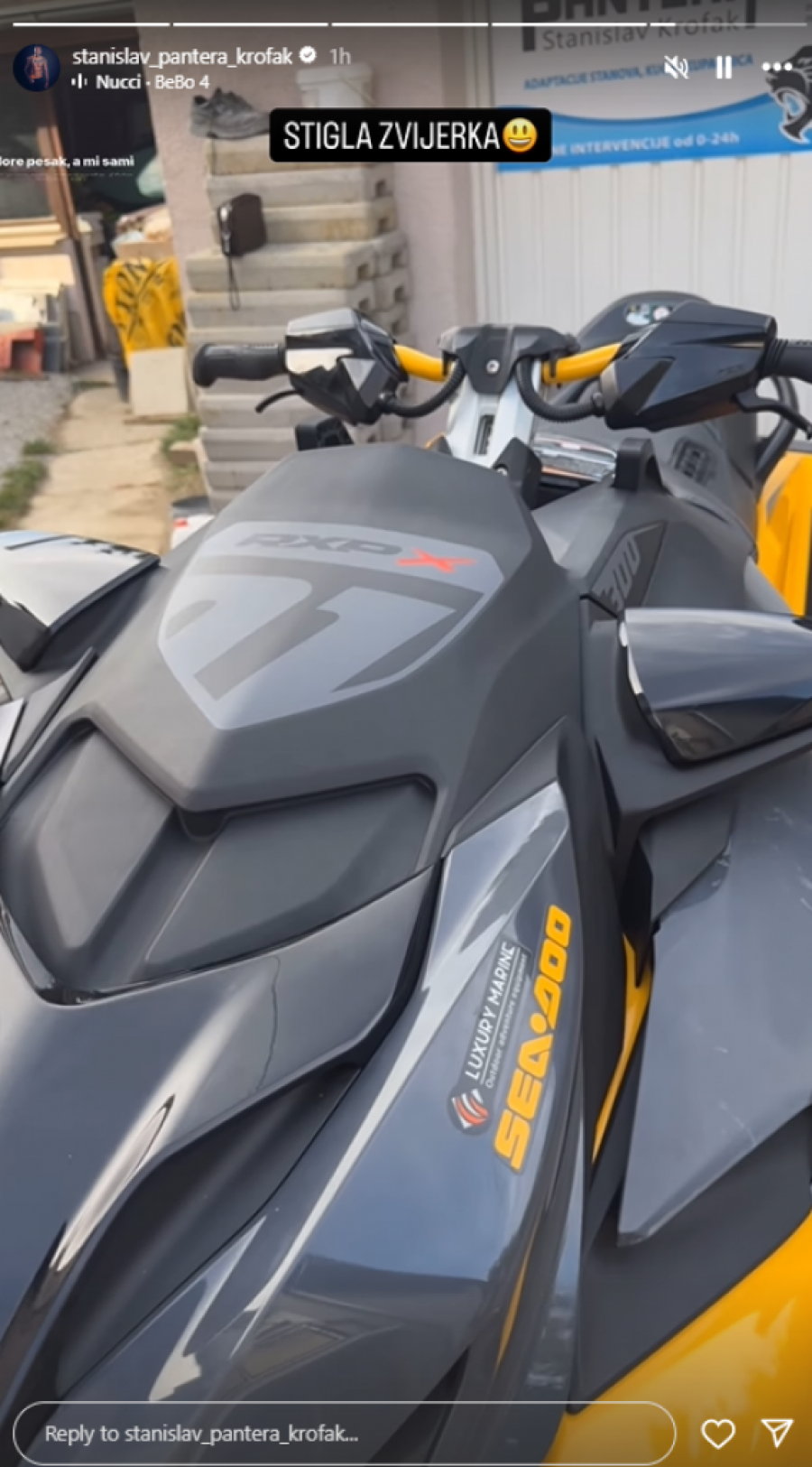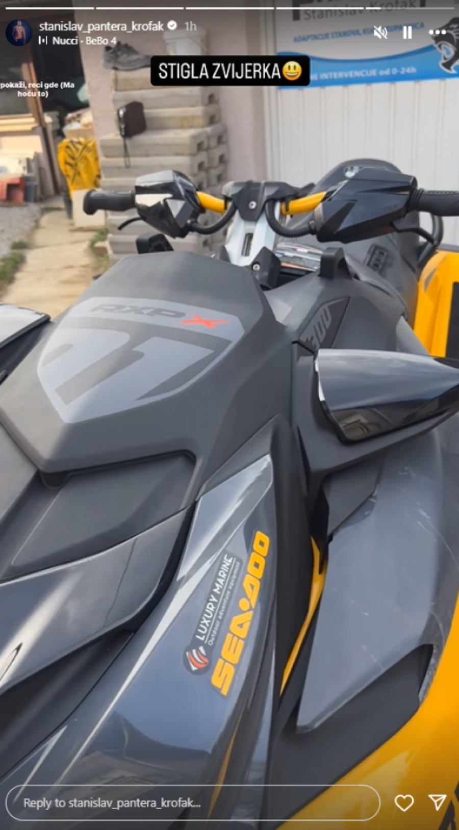Međutim, Stanislav je pripremio još jedno veliko iznenađenje i pokazao svoje novo vozilo. U pitanju je vodeni skuter koji je izašao prošle godine i čija cena iznosi preko 20.000 evra. Ovo plovilo je vrhunski trkački jet-ski vrhunskog karaktera, koji kombinuje snagu, upravljanje i kontrolu kao nijedan drugi na vodi, a sa rotax 1630 ace motorom od 300 ks, ništa drugo mu se neće približiti na trci kroz vodu.