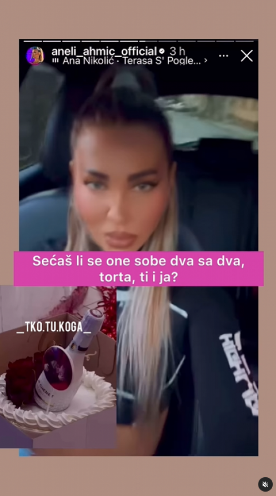 - Sećaš li se one sobe dva sa dva, torta, ti i ja - posebno je istaknuto uz snimak koji je završio na društvenim mrežama.
