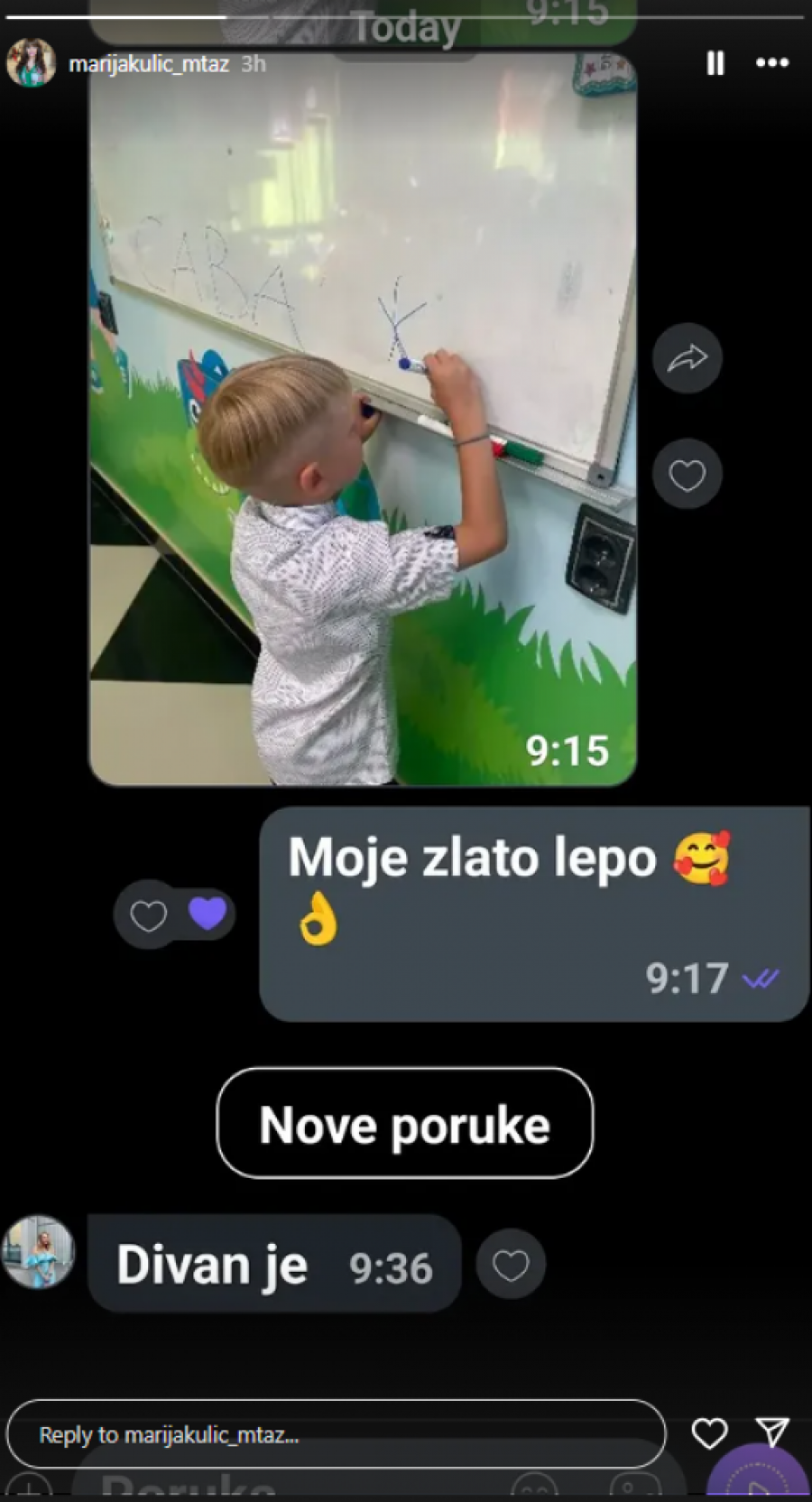 Tako je danas putem Marijinog profila na društvenoj mreži Instagram (kojim se inače služe i Marija i Miljana kada nije u rijalitiju) Miljana objavila fotografiju koju je dobila po svemu sudeći od vaspitačice, a na kojoj se može videti maleni Željko koji je započeo pisanje svog imena velikim početnim slovom, i na ćirilici. Ovaj prizor raznežio je srca čitave nacije, a po svemu sudeći, najviše je dotakao majku i baku, koje su potom podelile snimak devojčice koja plače od sreće, a koji je nedavno postao viralan na društvenim mrežama.