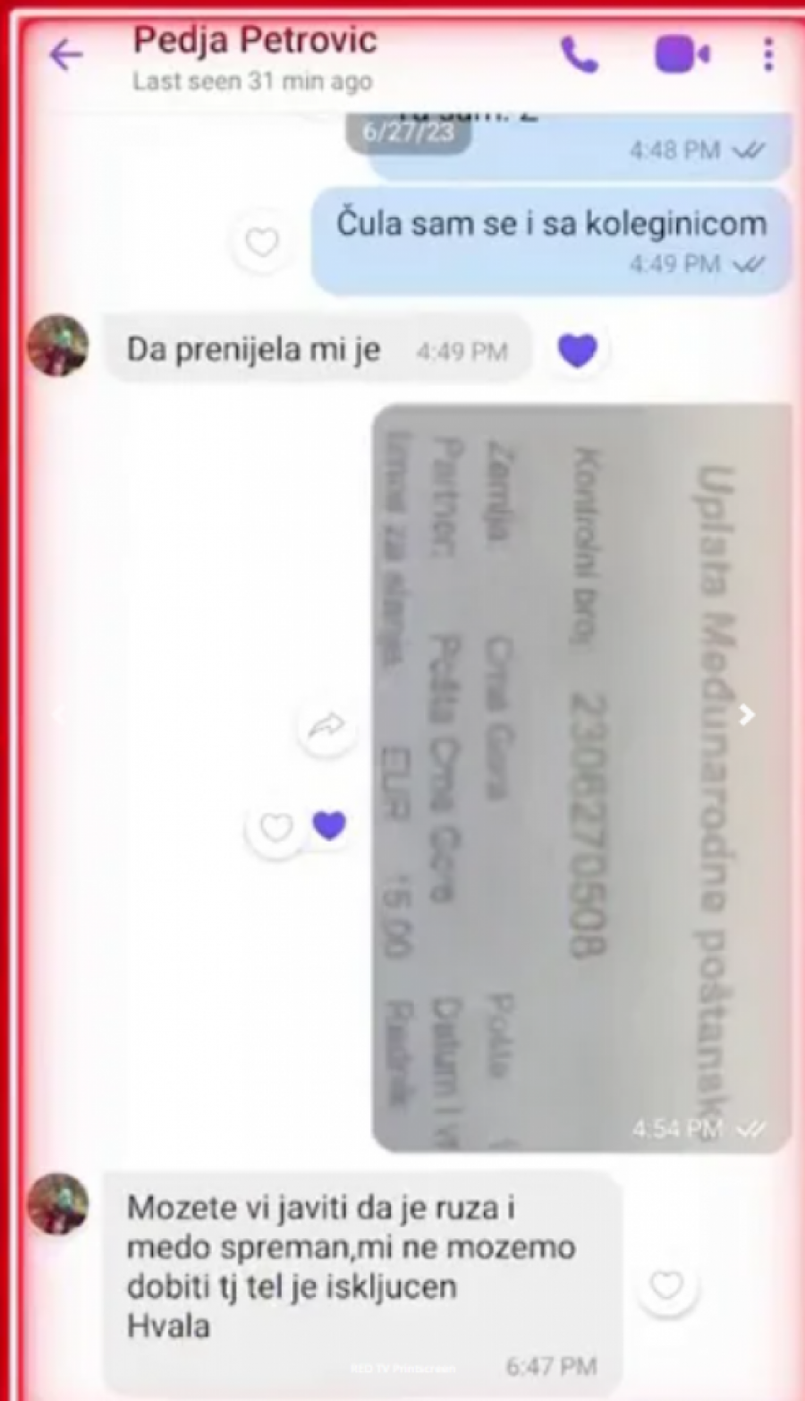 On je, pre nego što je počeo da iznosi svoju stranu priče, dostavio Red TV-u svoje dokaze u vidu prepiski u kojima se vidi da se Anđela uslikala sa buketom cveća koji joj je on poslao krajem juna.