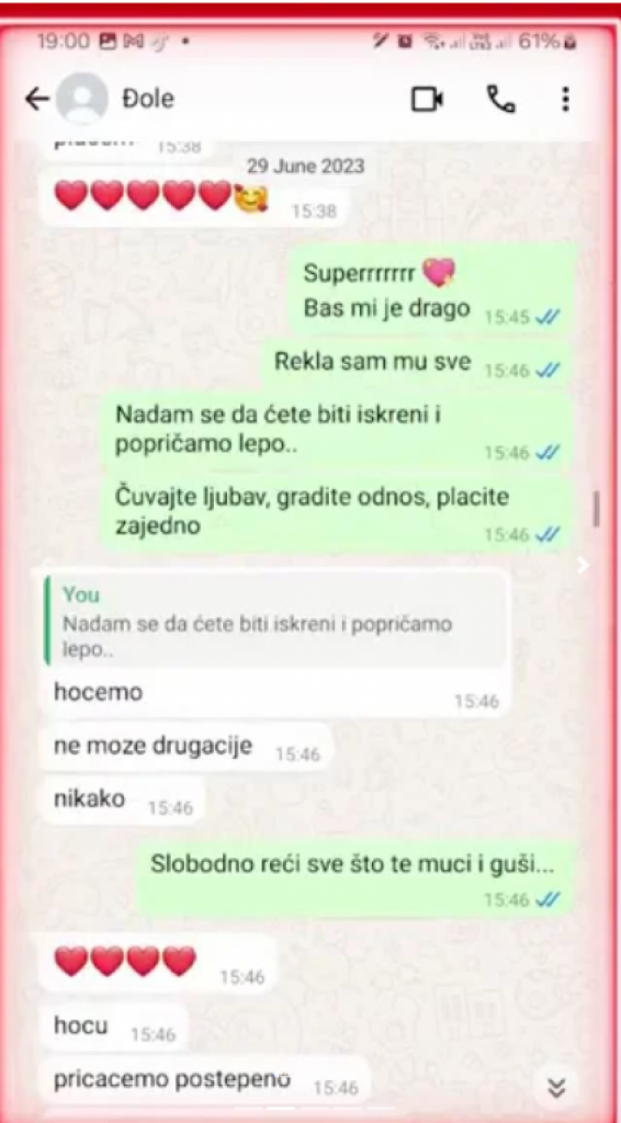 - Zbog toga što stvari koje je radila samko zarad mog poziva njoj, jednostavno nisu normalne po meni. Devojka se razišla sa mnom i želela je da budem u nekoj tajnoj vezi s njom. Ja sa 47 godina ne mogu da budem u tajnoj vezi stvarno, a po njenoj priči je to bilo zbog roditelja da pokaže njima da nije sa mnom. Znam da su joj roditelji udarili ozbiljan pritisak, svaki dan mi se žalila posle toga dok nismo prestali da se čujemo, to je zašto je htela da bude tajna...Imao sam naravno deo lepog mišljenja do trenutka dok nije počela da preti tužbama, jer je htela da napravi od mene nasilnika, jer očigledno to uz moj CV to lako ide. Kad su krenule tužbe, bio sam razočaran već. Moj otac je bio prisutan koji može da kaže da smo svako jutro bili nasmejani, ona je rekla da je fejkovala sve. Šta da kažem onda ja za sve to? Neću ja nju tužiti, nisam tužio prethodnu za sve ono što je izgovorila, ne pada mi na pamet, čak ne bih ni iznosio demante ali je sama ona to napravila, jer je rekla te stvari. Ja nemam zabranu prilaska i nisam bio u policiji, čak ću i da odem po papir da vide ljudi da od toga nema ništa - rekao je on.