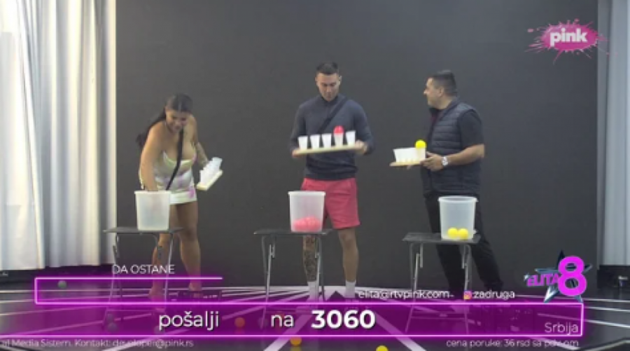 - Imate pet kuglica, pet čaša i treba da ih stavite tu. Ako ispustite lopticu, idete ispočetka. Kad završite, stavite lopticu u gajbicu. Ko pobedi, dupliraće mu se glasovi - rekao je Darko.