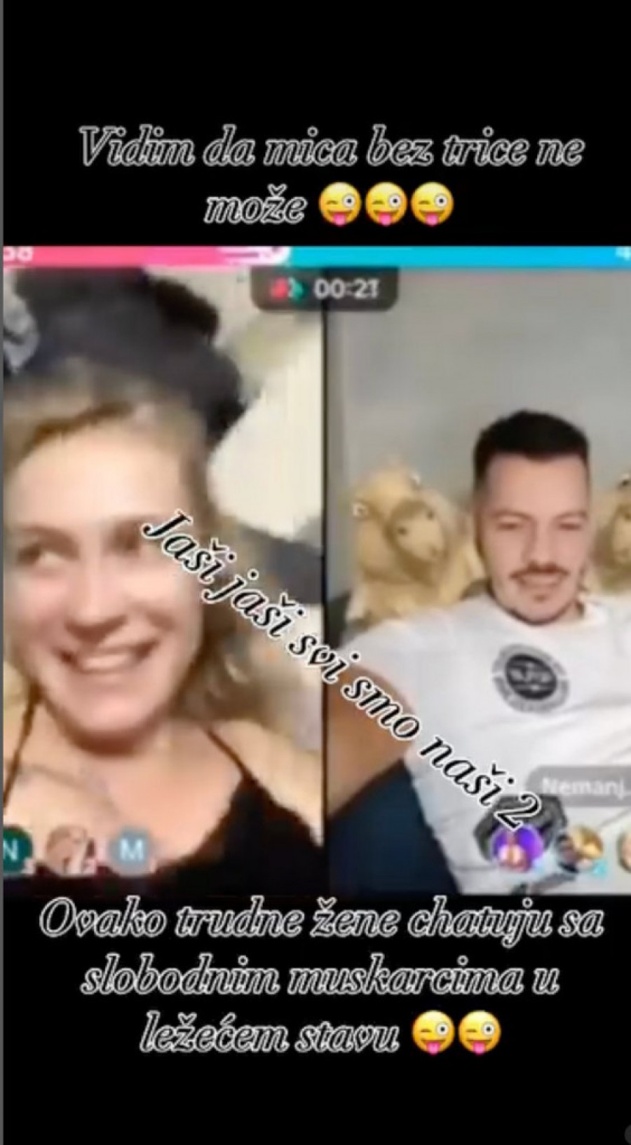 Međutim, iako je do sada sve bilo na nivou spekulacija, isplivao je snimak na kome se primećuje da rijaliti trudnica uopšte ne gubi vreme. Ona je na pomenutom zapisu snimljena na krevetu, a viodila je konverzaciju sa Nemanjom Gačićem i bila veoma raspoložena.