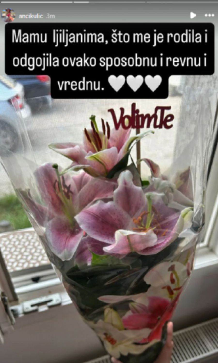 Ana Kulić, lični trener i ćerka poznate rijaliti učesnice Marije Kulić, danas je obradovala svoju majku buketom ljiljana i porukom "Volim te".