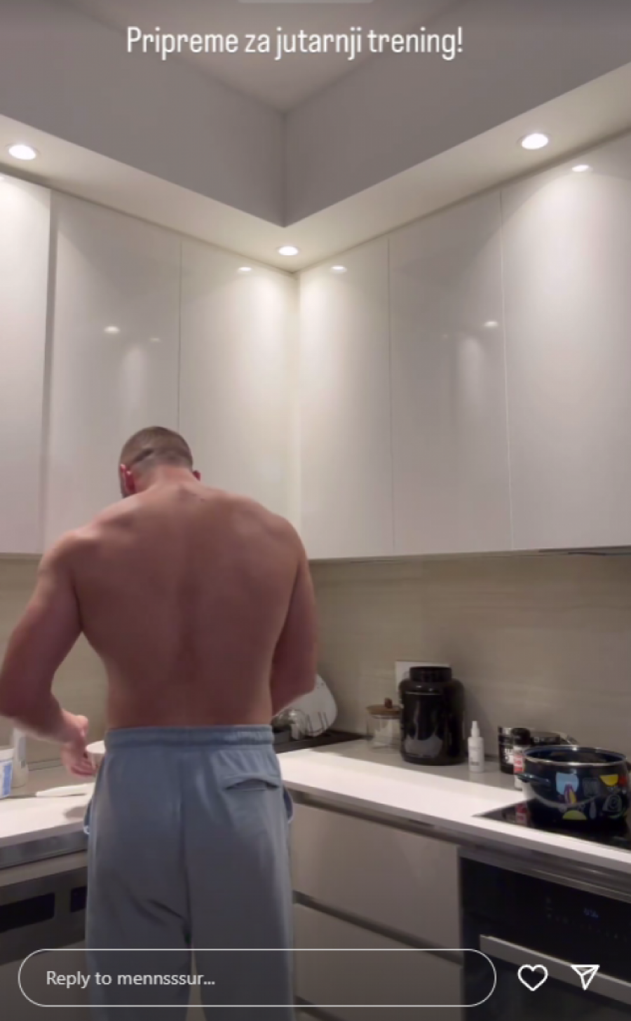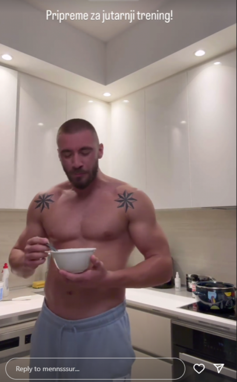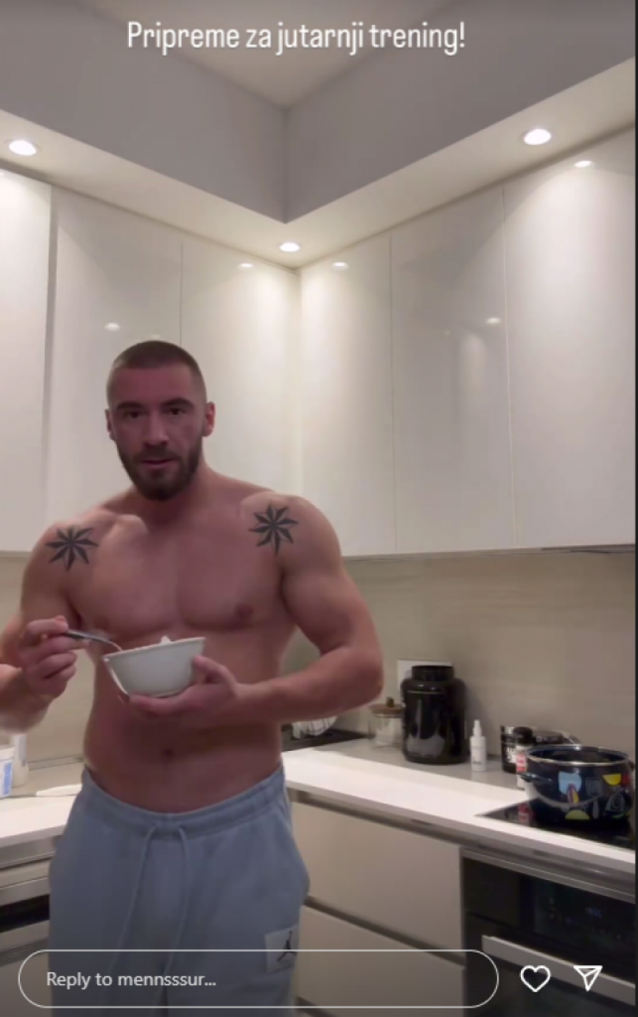 Bivši učesnik "Elite 7" Mensur Ajdarpašić, izazvao je veliku pažnju svojih pratilaca na Instagramu objavom snimka na kom pokazuje svoje izvajano mišićavo telo. Mensur se usnimio u kuhinji dok je spremao obroke za novu nedelju, a tom prilikom je pozirao bez majice, ističući svoju posvećenost zdravom načinu života i redovnom treniranju u teretani.