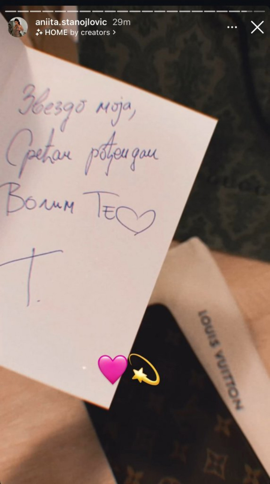 Bivša učesnica rijalitija "Elita 7", Anita Stanojlović, je danas proslavila svoj rođendan na veoma zanimljiv način. Na svom Instagram profilu, Anita je podelila fotografiju specijalnog poklona koji je izazvao dosta pažnje među njenim pratiocima. Iako su se mnogi od njih odmah zapitali da li je poklon od novog dečka, Anita je ostala misteriozna po tom pitanju.