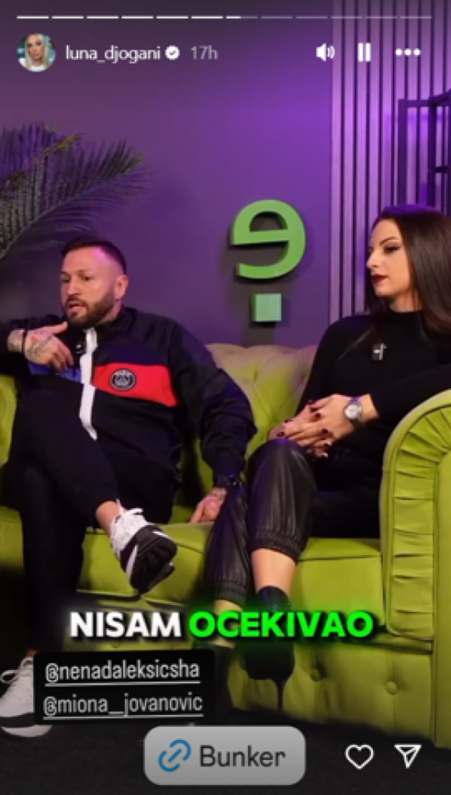 Nakon diskvalifikacije iz "Elite 8" rijaliti par Miona Jovanović i Nenad Aleskić Ša gostovali su u emisiji pobednice "Zadruge 2" Lune Đogani, gde su otvorili dušu na sve teme.