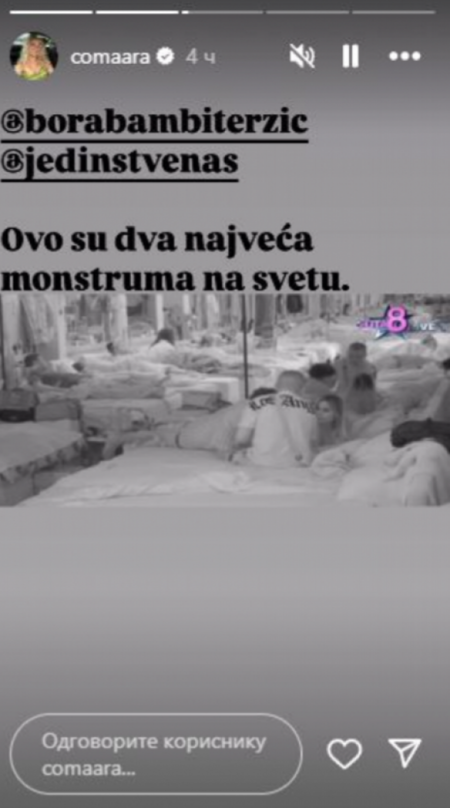 - Ovo su dva najveća monstruma na svetu. Monstrum koji dozvoljava monstrumki da ovako priča o mojoj bebi. Ko je ovo vaspitavao? - poručila je Milica.