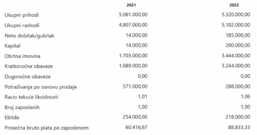 Zanimljivo je i to da su, prema javno dostupnim podacima, ukupni prihodi 2021. godine bili nešto više od pet miliona dinara, a rashodi blizu 4.800.000, što znači da je razlika između prihoda i rashoda za godinu dana svega 200.000 dinara. Slično je bilo i naredne, 2022. godine, kada je ukupan prihod njenog salona bio 5.320.000 dinara, a rashod 5.102.000.