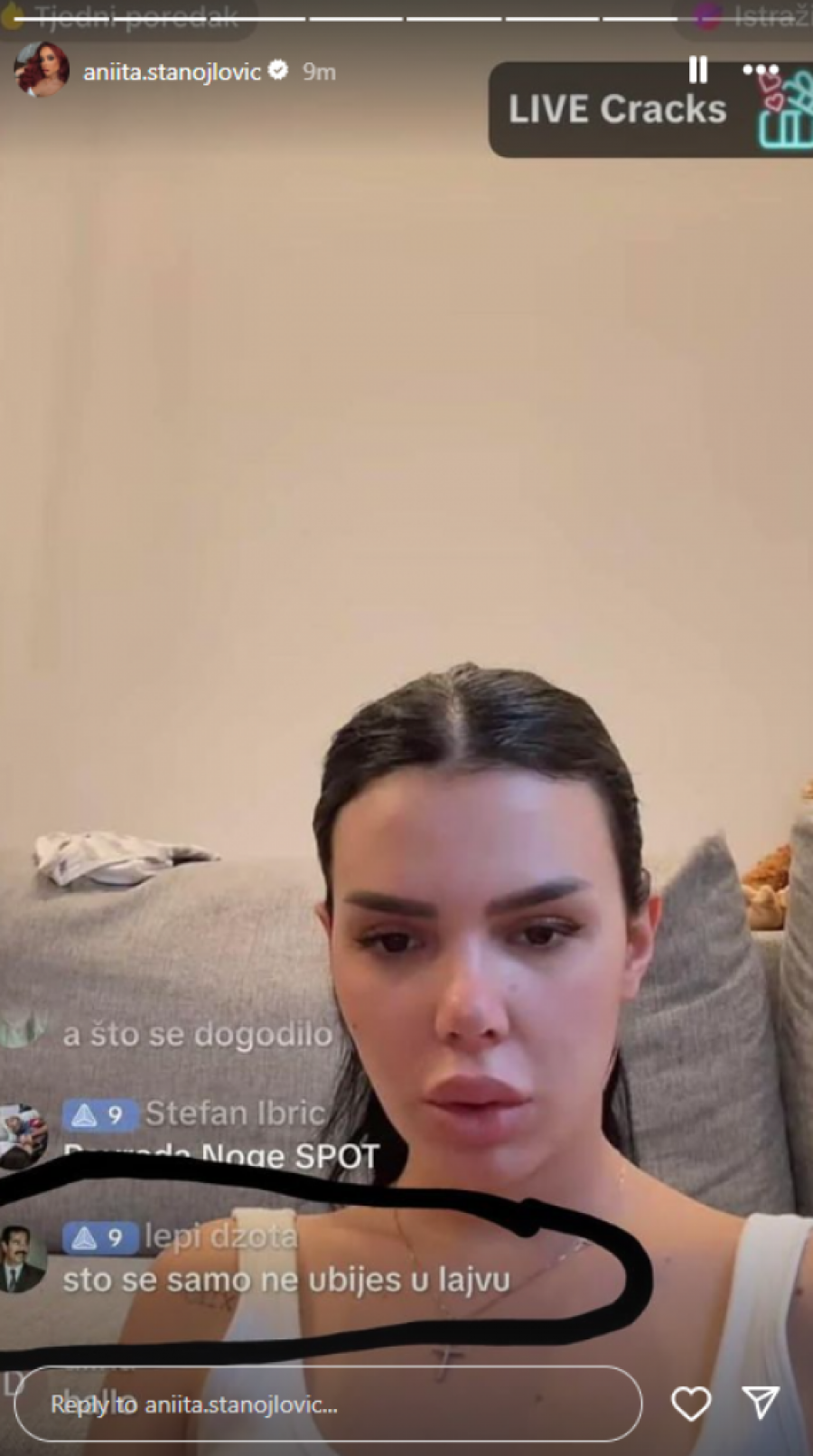 Pobednica "Elite 7" Anita Stanojlović juče je zabrinula svoje fanove na društvenoj mreži Instagram, gde je objavila sliku iz bolnice, te otkrila da se suočava sa ozbiljnim oblicima sajber nasilja, a danas je podelila printskrinove na kojima se vidi da joj ljudi pišu da treba da se ubije u "lajvu" na TikToku.