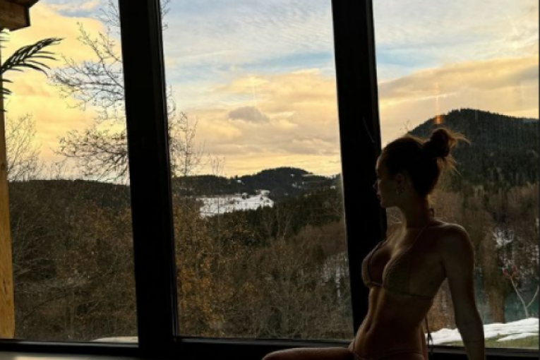 Već u sledećoj objavi se potpuno razgolitila i pokazala svoje zgodno telo pored unutrašnjeg bazena, dok je iza nje pucao pogled sa tragovima snega u pozadini.
