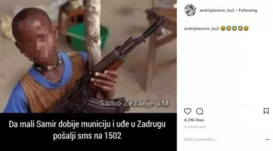 Na fotografiji koju je postavio na ovu društvenu mrežu može se videti dečak tamne puti sa puškom, ali je natpis na njoj privukao najveću pažnju.