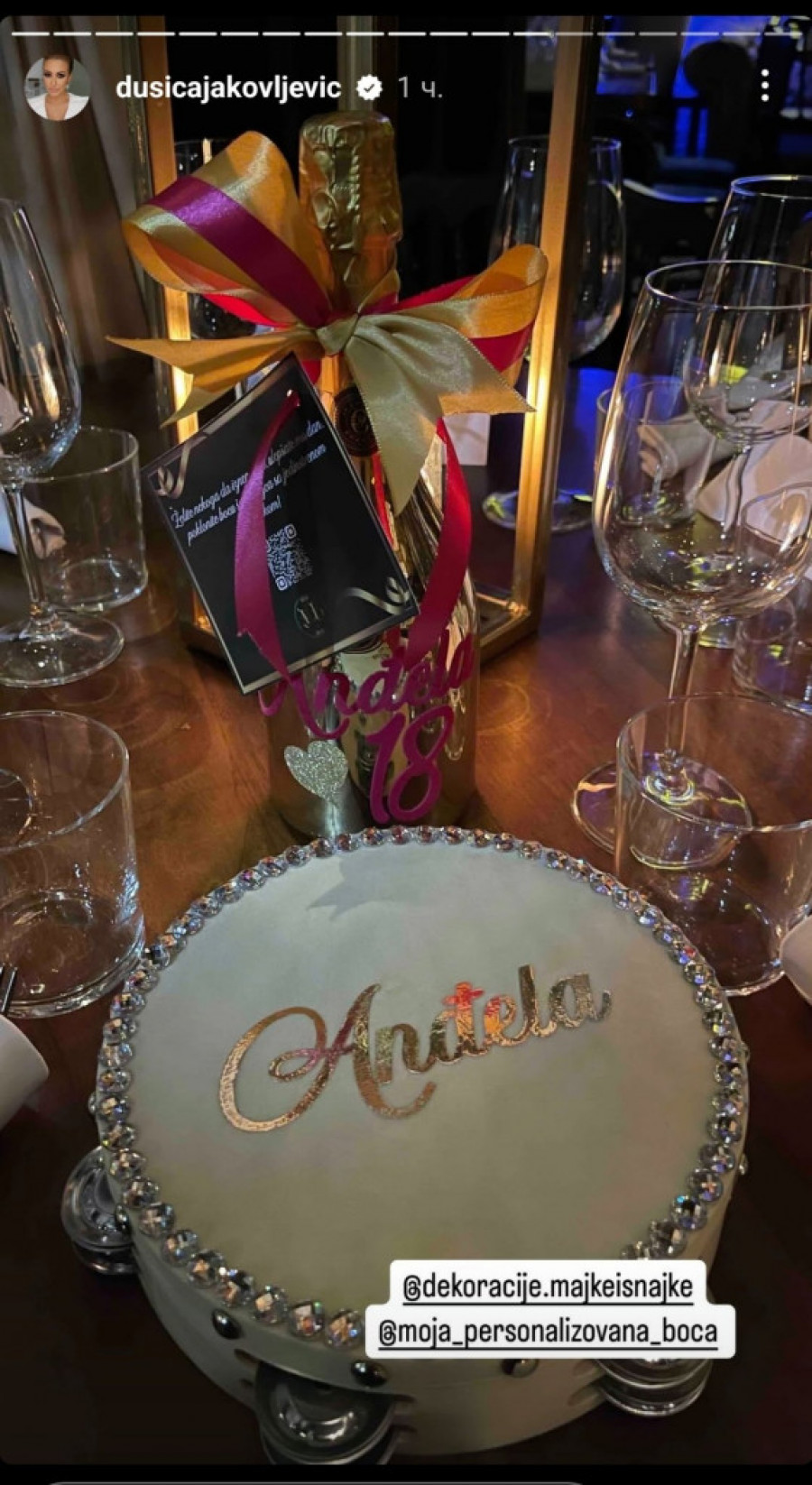 Voditeljka "Elite 8", Dušica Jakovljević večeras proslavalja punoletstvo svoje ćerke Anđele koju je dobila u braku sa producentom Aleksandrom Miljušem.