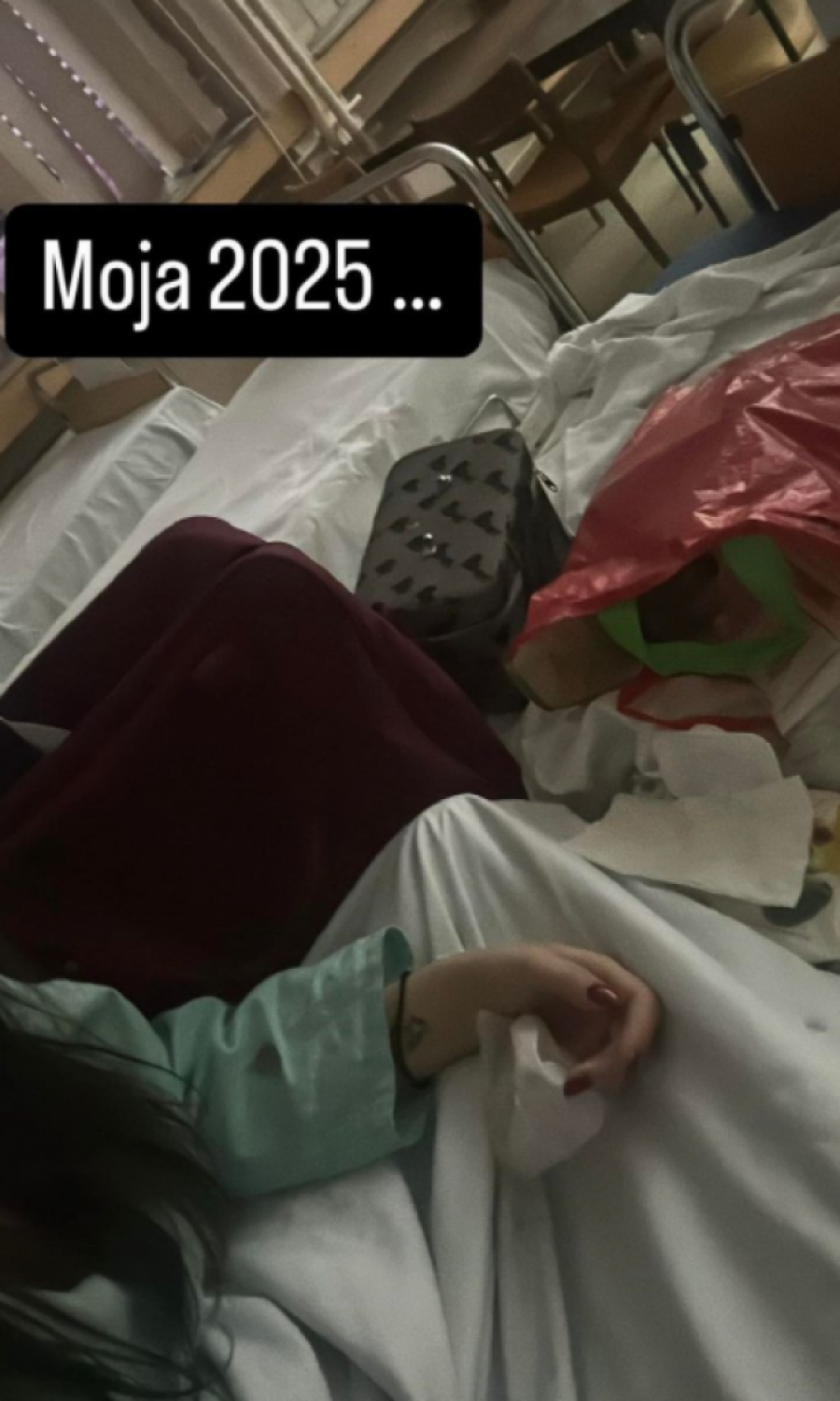 - Moja 2025. ... Žene, niko nije vredan vašeg stresa, gledajte samo sebe! - napisala je Sara Stijović, dok na objavi vidimo kako leži u bolničkom krevetu sa braunilom u ruci.