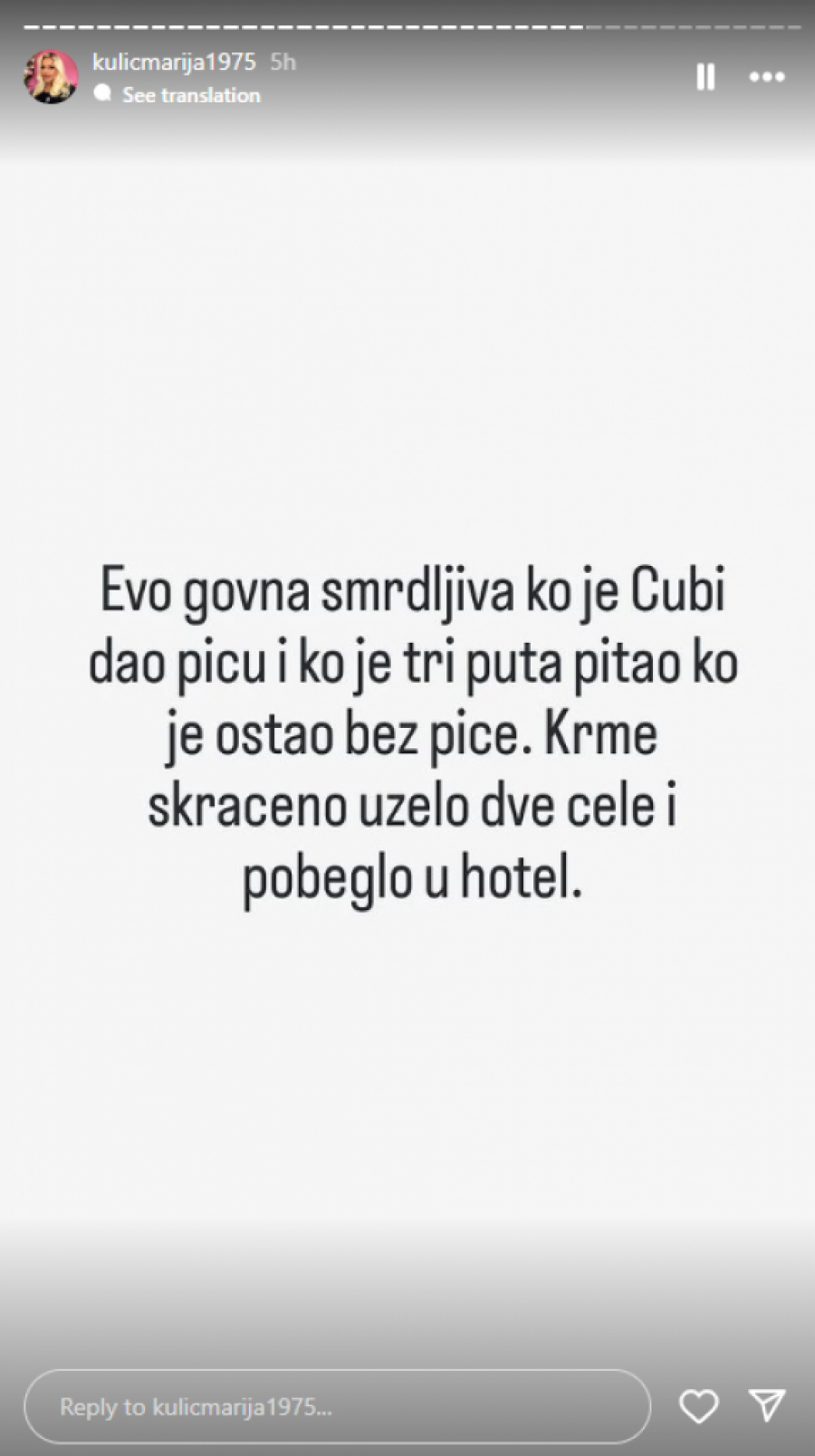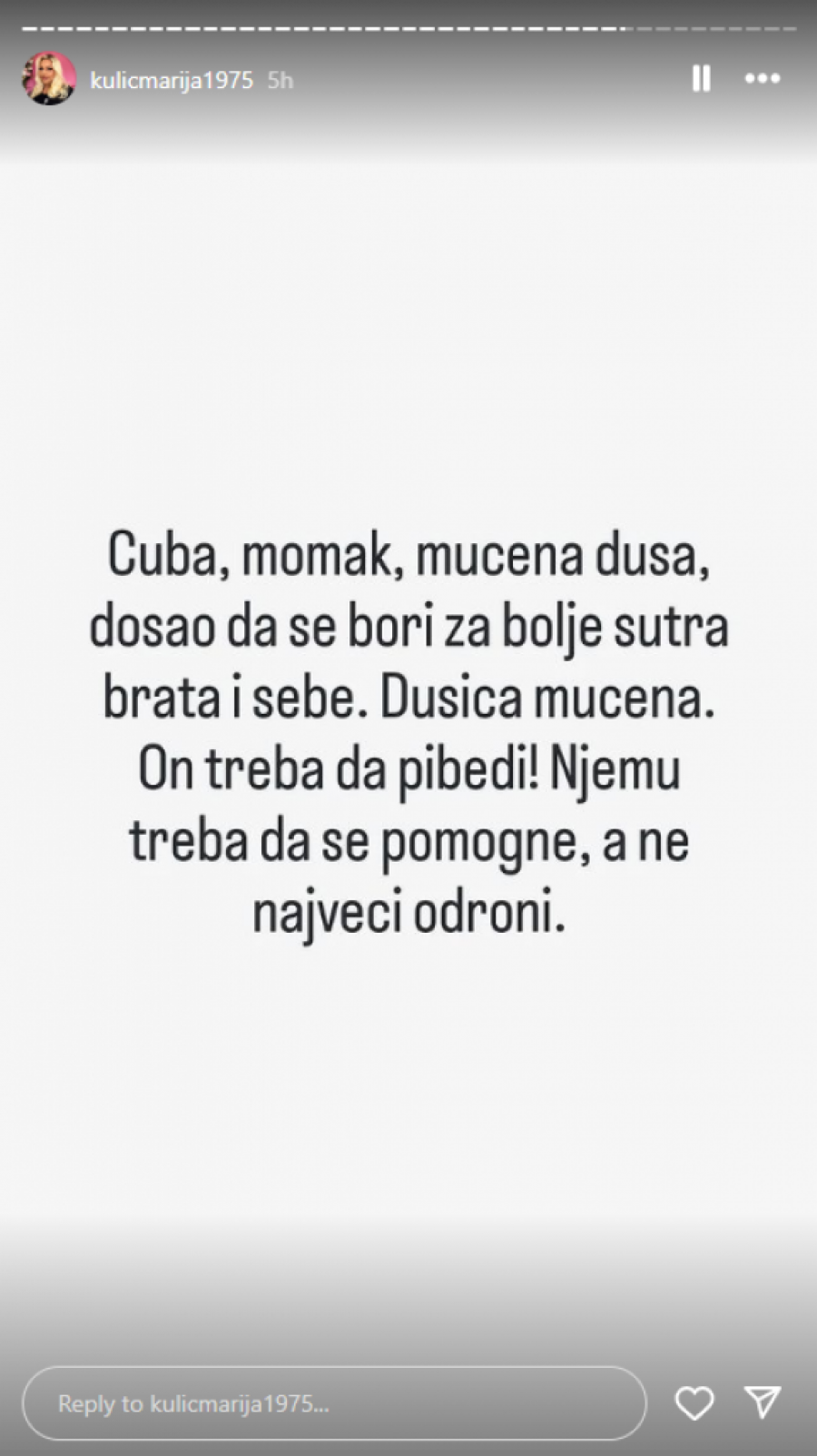 - Ne znam šta da ti kažem. Narod traži njenu diskvalifikaciju. Niti jedan pozitivan komentar, sve sama sebi radi loše. Šta je uradila ako opet sad izađe? Treba joj odmor od ovog rijalitija. To su proklete pare - napisala je jedna osoba, a Marija je odgovorila: