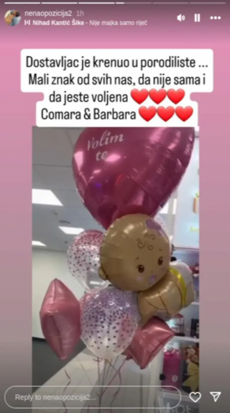 - Dostavljač je krenuo u porodilište. Mali znak od svih nas, da nije sama i da jeste voljena. Comara i Barbara - piše u opisu video snimka.