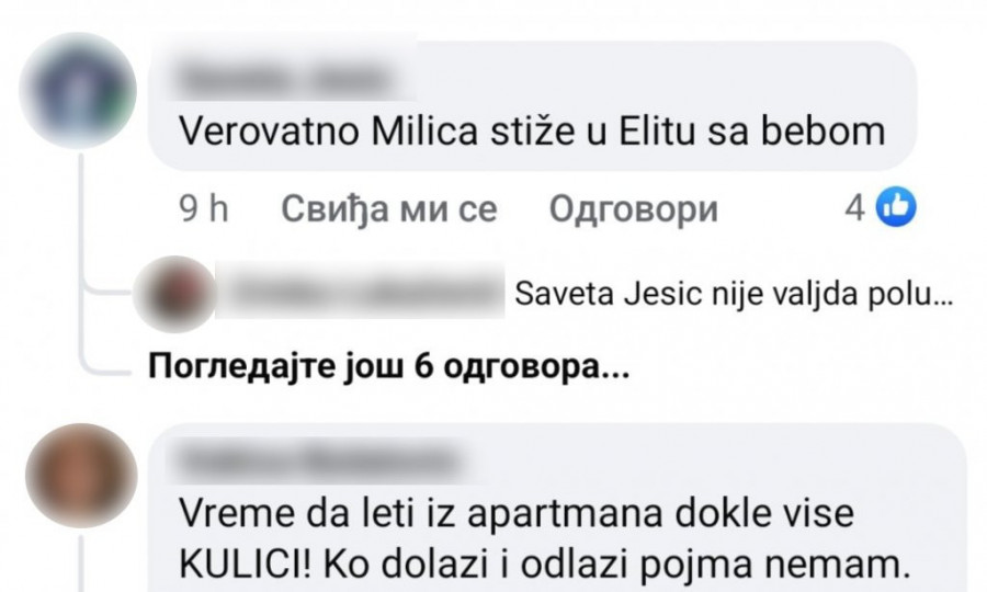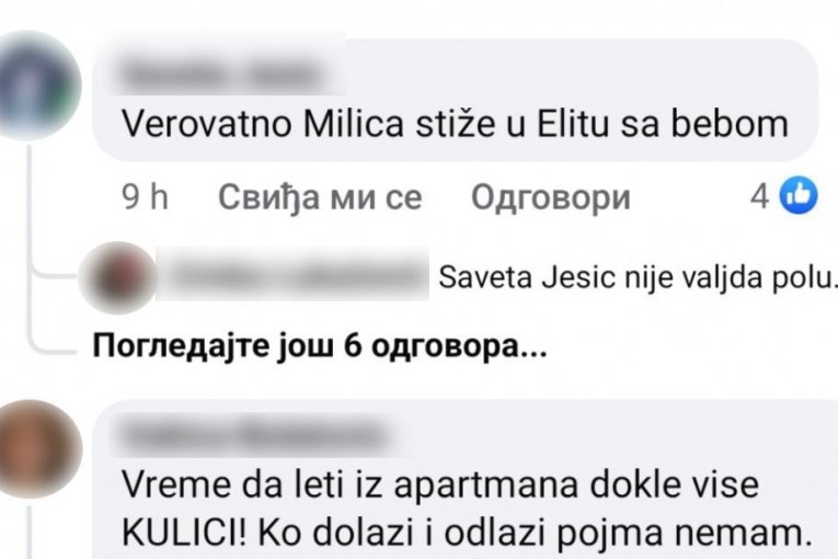 - Verovatno Milica stiže u Elitu sa bebom - stoji u komentarima korisnika društvenih mreža, gde u nastavku sledi još jedna reakcija: