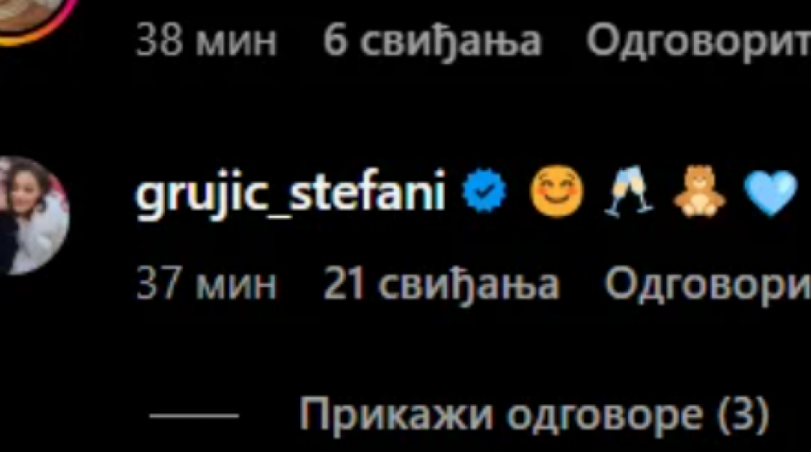 Novopečena mama Stefani Grujić, koja je danas na svet donela sina Konstantina sa Danijelom Dujkovićem Munjezom, aktuelnim učesnikom "Elite", konačno se oglasila nakon porođaja. Stefani je bila u centru pažnje tokom cele trudnoće, a sada je prvi put javno iznela svoje osećaje.