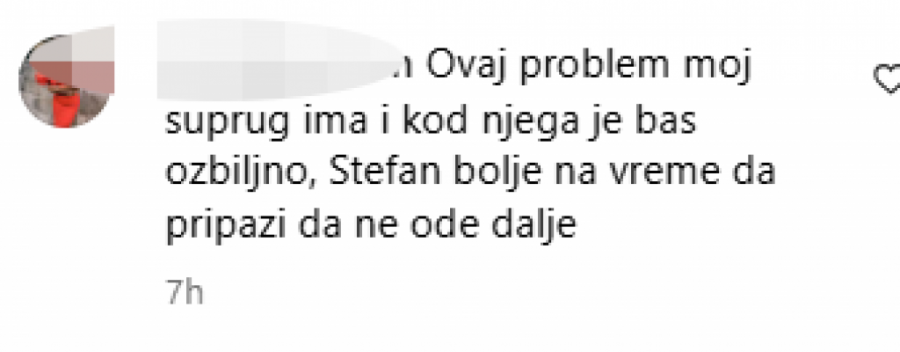 - Ovaj problem moj suprug ima i kod njega je baš ozbiljno, Stefan bolje na vreme da pripazi da ne ode dalje - glasio je komentar.