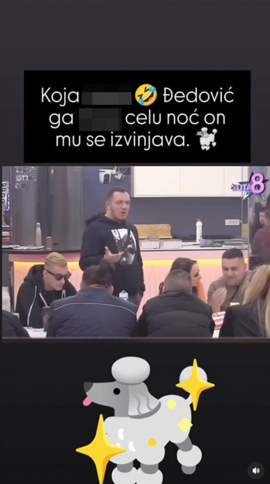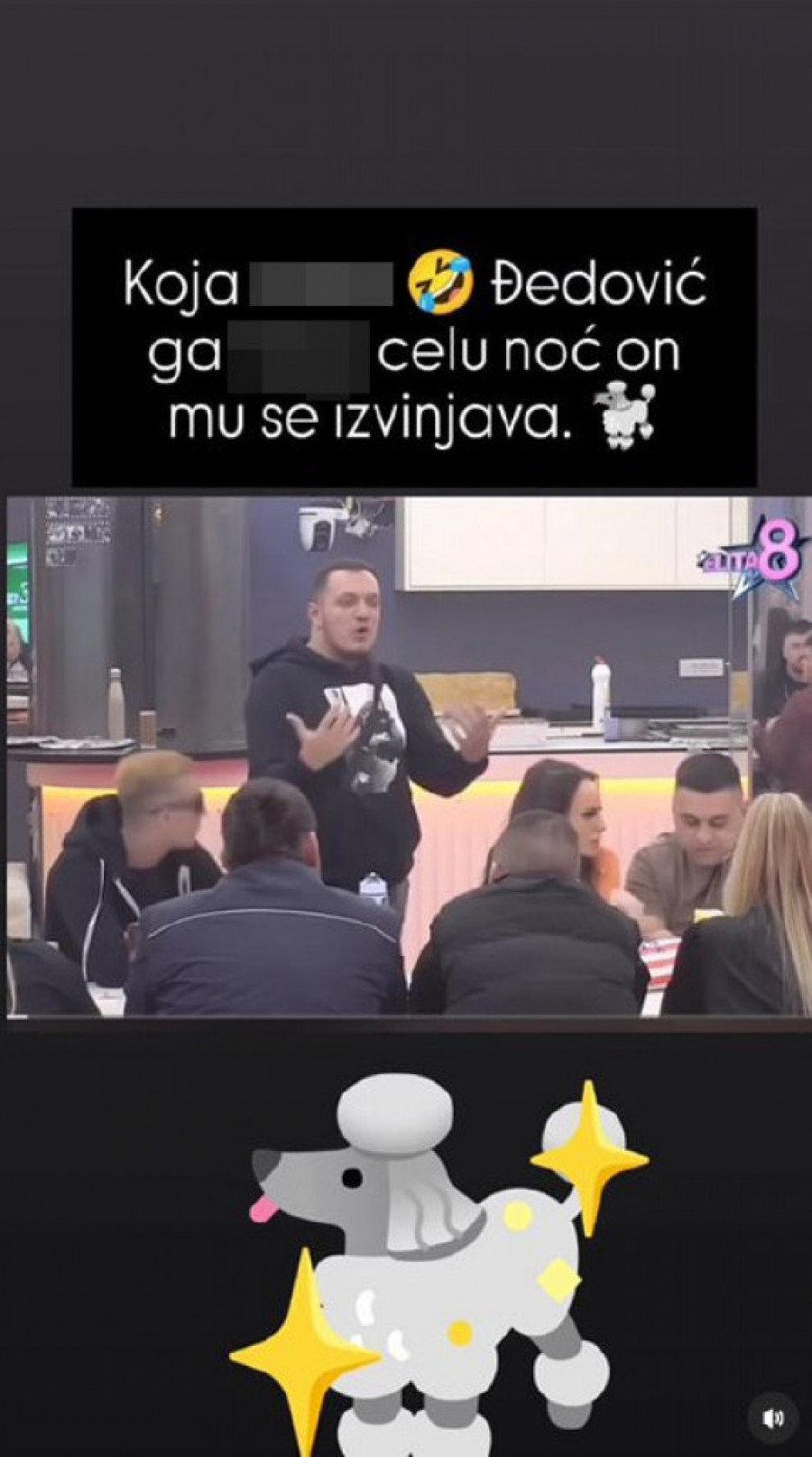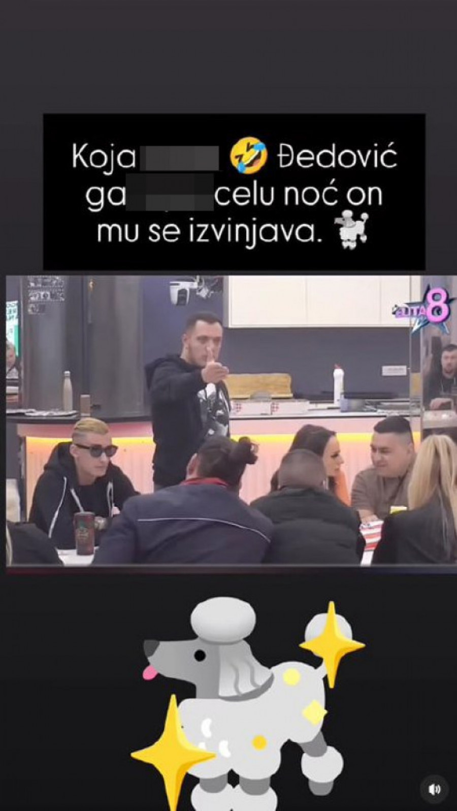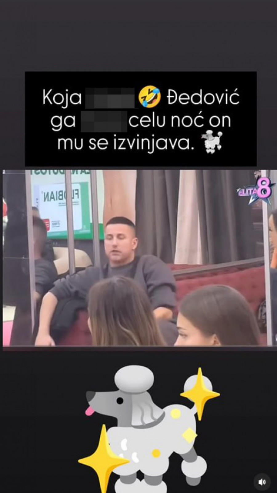 "Koja ca*a, Đedović ga t*pa celu noć, a ovaj se izvinjava", stoji u opisu snimka.