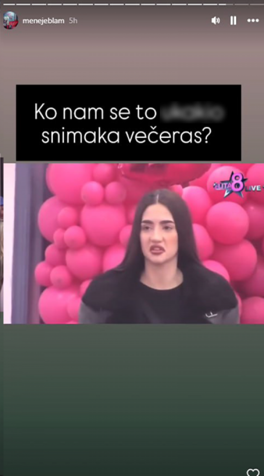 - Trenutno sam u "kold" režimu, videćemo koja će biti uskoro - rekla je Anđela, dok je i sama stranica ostavila komentar da je očigledno nekome velika frka od gledanja snimaka.