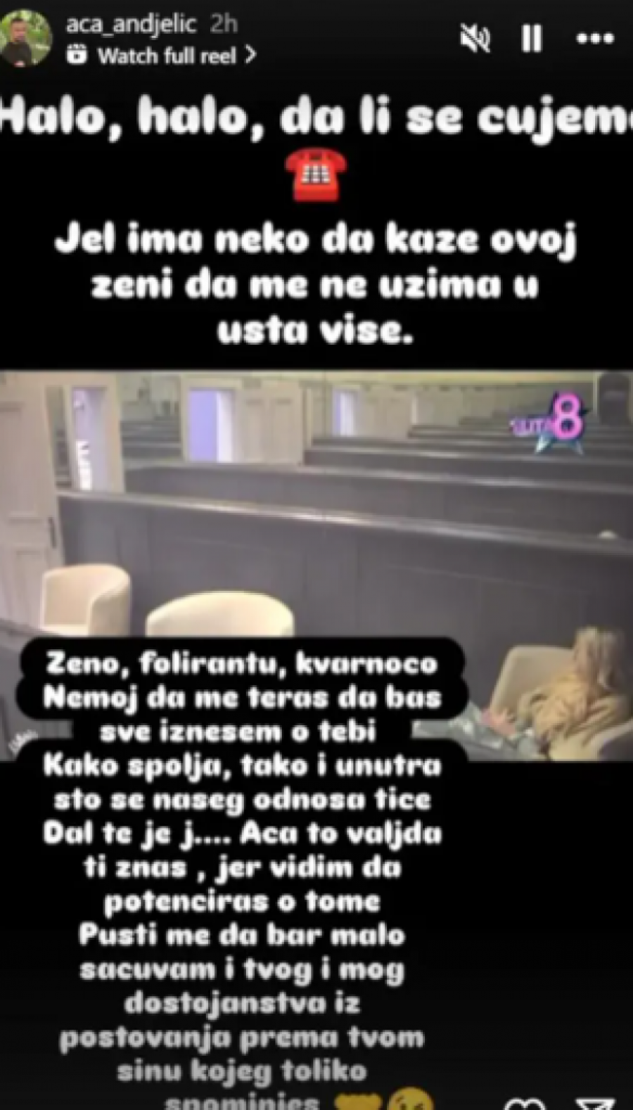 Nakon ovih optužbi, Aleksandar Anđelić nije ostao nemišljen i putem Instagrama poslao je oštru poruku svojoj bivšoj devojci. Njegova burna reakcija ostavila je prostor za spekulacije o pravoj istini koja stoji iza njihovog odnosa.