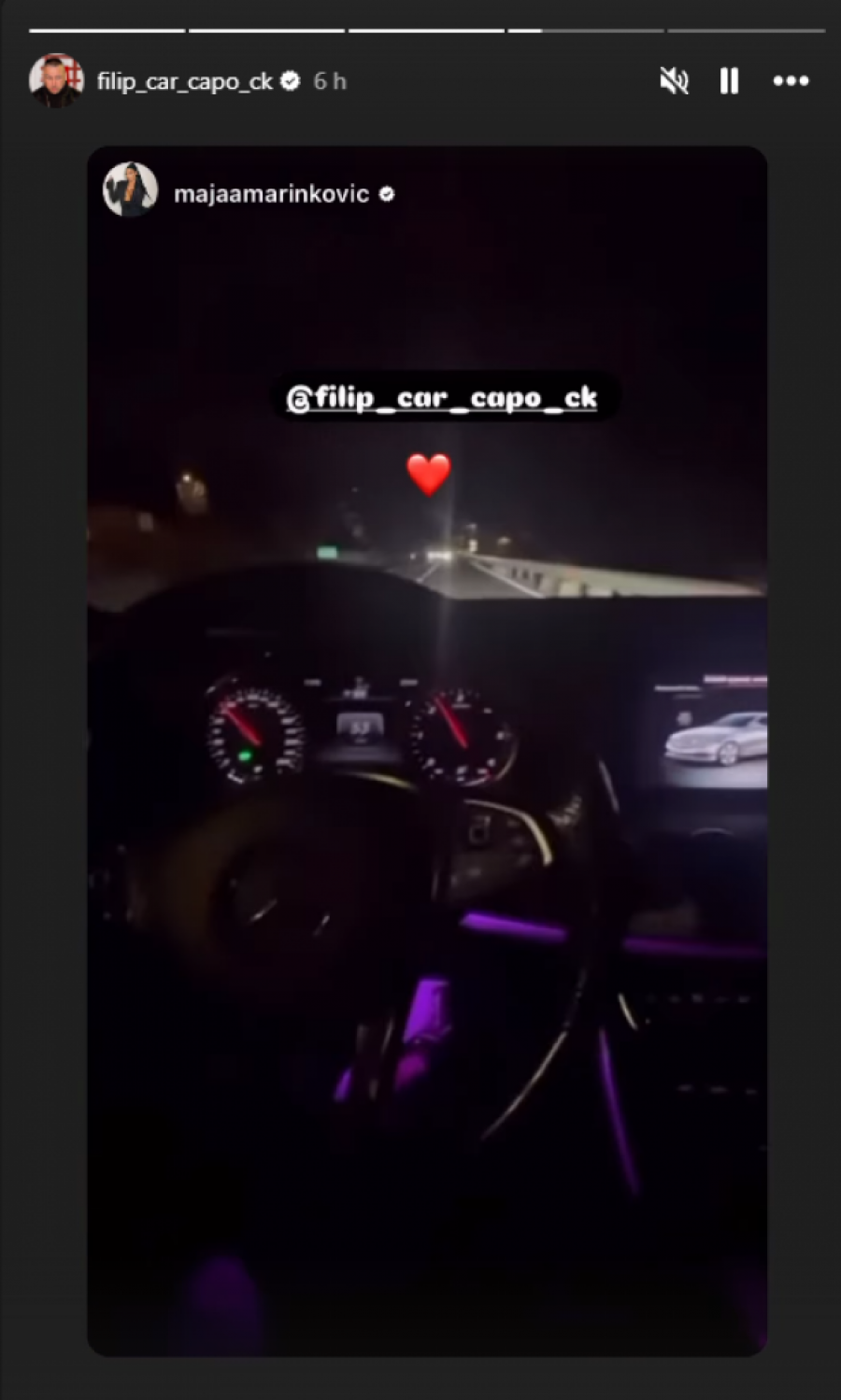Iako ne potpuno direktno, Maja Marinković na Instagram profilu objavila je romantični snimak iz kola, kako se vozi sa Filipom Carem, a u pozadini su išli zvukoci ljubavi. Reči koje su se čuli u pozadini videa oslikavali su njene emocije prema Caru, što mnoge nije ni iznenadilo.