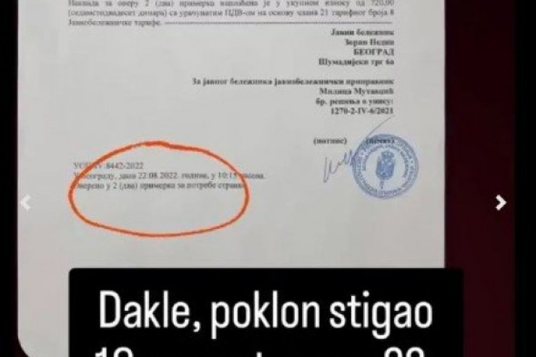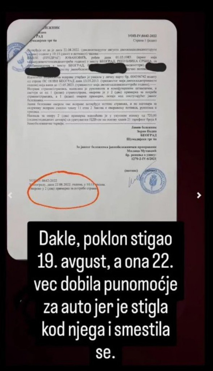 - Dakle, poklon stigao 19. avgusta, a onda 22. već dobija punomoćje za auto jer je stigla kod njega i smestila se - pisalo je na sledećem delu klipa, gde je postavljen i dokaz o punomoćju.