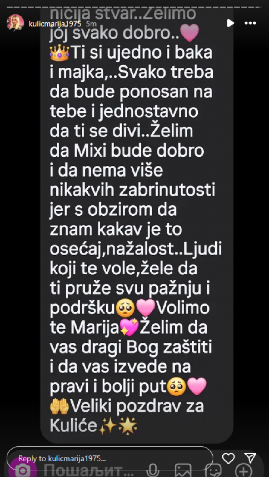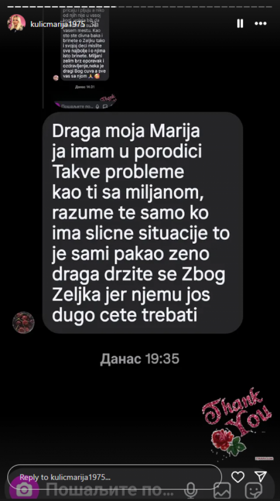 U jeku ovog potresnog događaja, mnoge je zabrinulo pitanje – šta se u tom trenutku dešavalo sa malim Željkom, Miljaninim sinom? Marija je rešila da predupredi nagađanja i spekulacije, pa se oglasila putem društvenih mreža.
