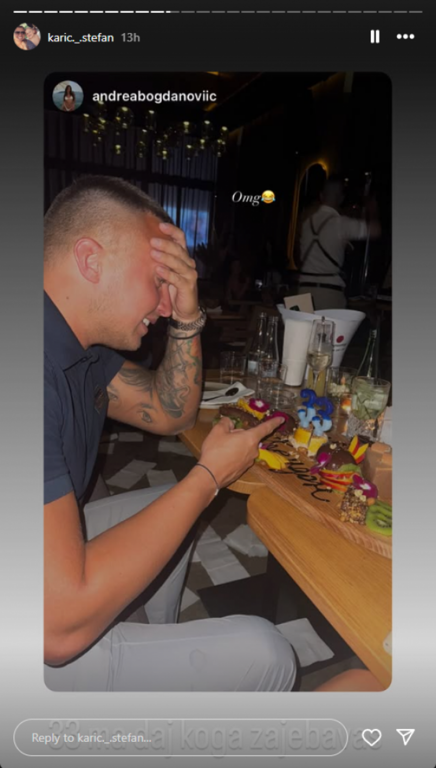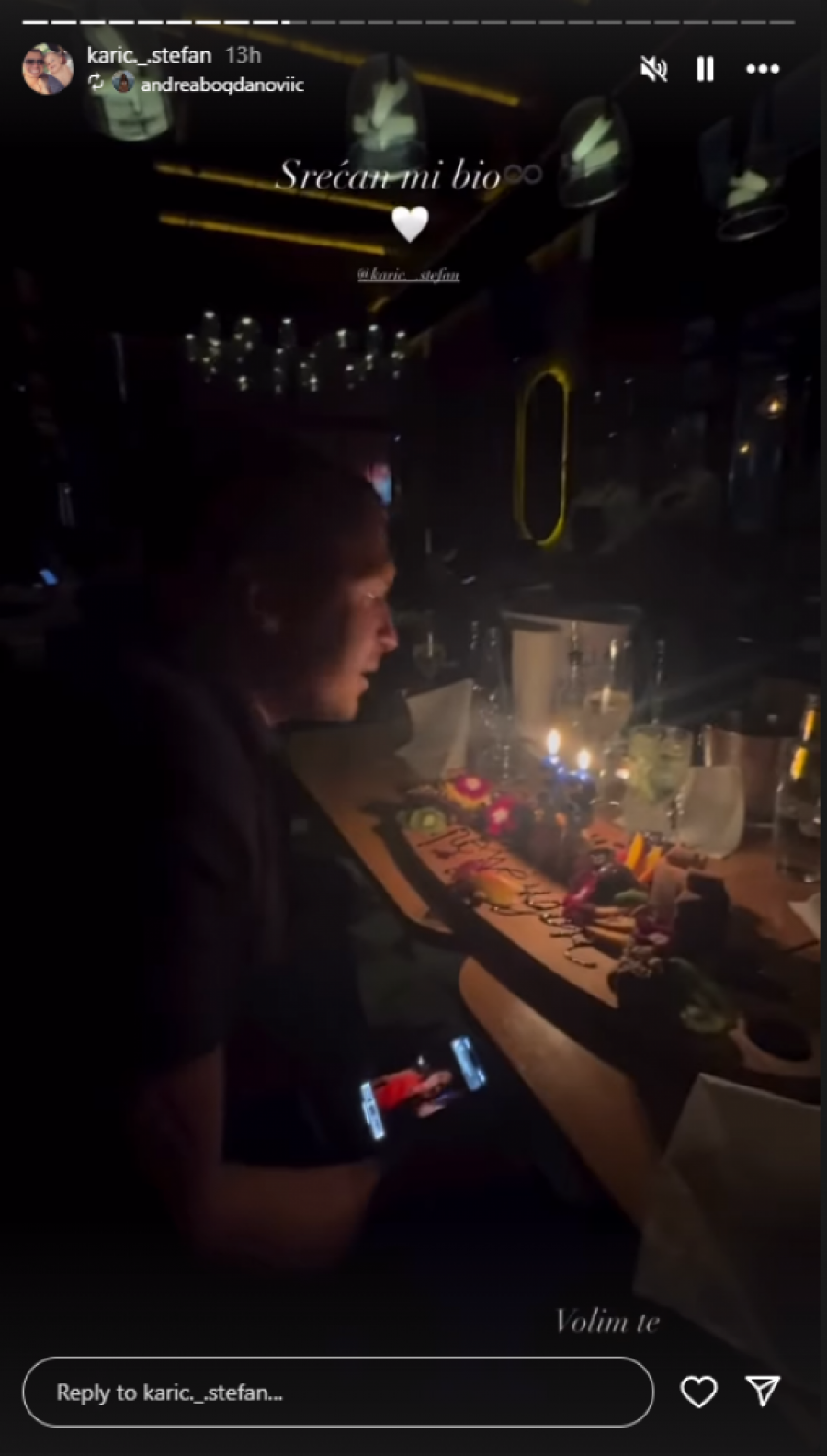 Doskorašnji učesnik rijalitija "Elita 8" Stefan Karić proslavio je 33. rođendan uz iznenađenje koje mu je priredila devojka Andrea Bogdanović, i to tačno u ponoć. Iako se činilo da će im prethodni meseci doneti raskid i kraj ljubavi, njih dvoje su pokazali da su jači nego ikad - što su potvrdili i emotivnim objavama na društvenim mrežama.