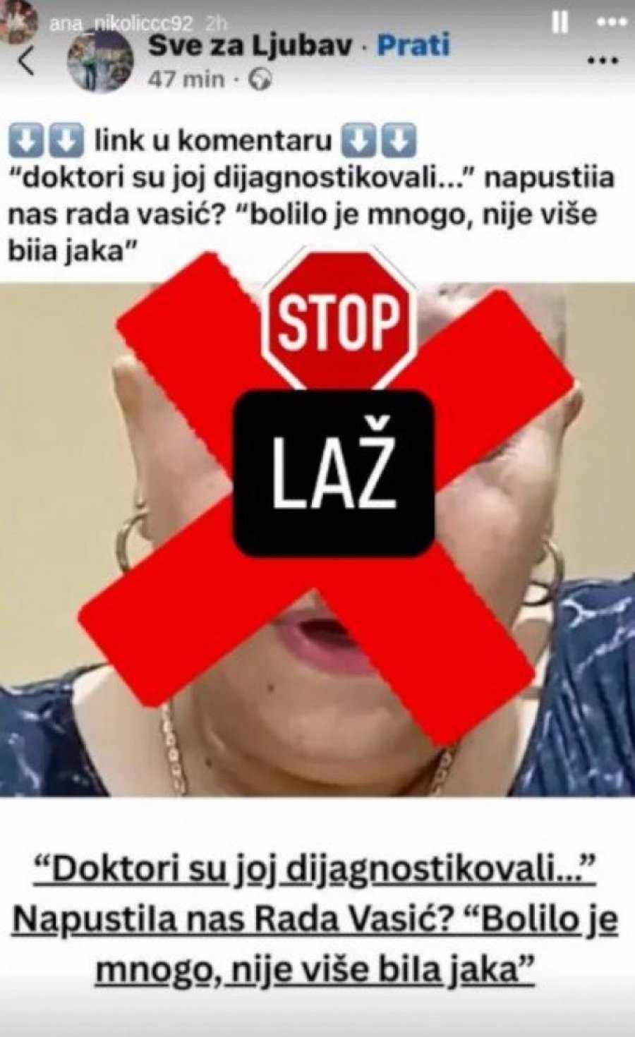 Nažalost, u medijima su se pojavile lažne informacije o Radinom zdravlju, sugerišući da je izgubila borbu sa bolešću. Ova vest izazvala je bes njenih kćerki, Ane i Ivane Nikolić, a Ana je javno osudila širenje neistina.