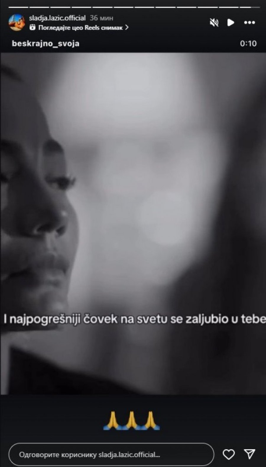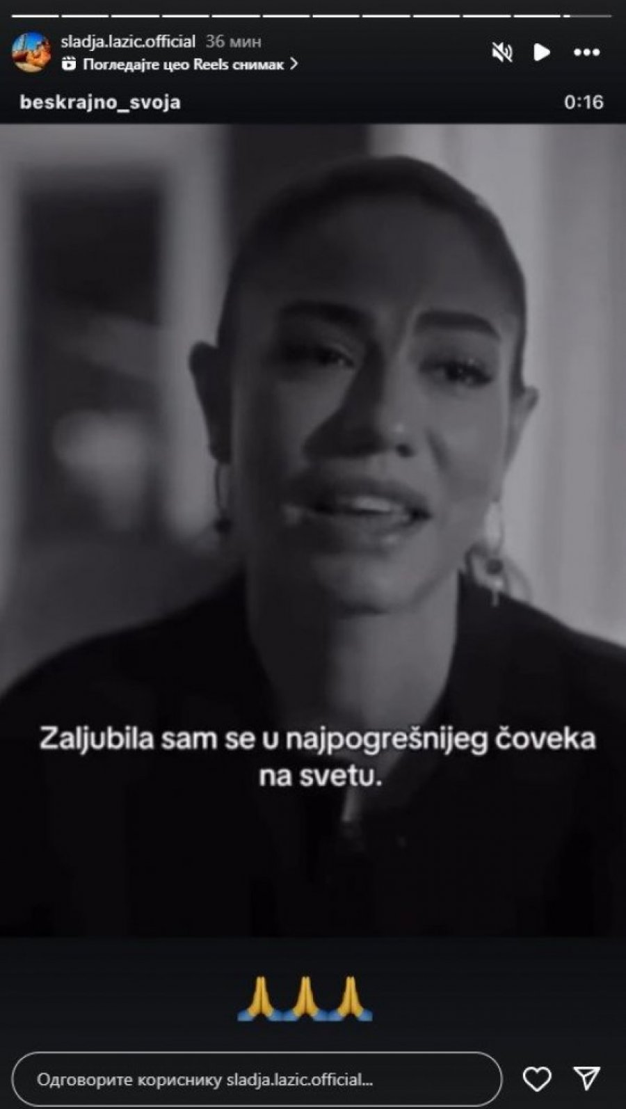 Prvo je podelila vest u kojoj se navodi da joj je Terza pisao poruke "do kasno u noć“, što je odmah pokrenulo lavinu komentara o tome da njihov odnos možda nije baš tako jasan kao što on tvrdi. Nedugo zatim usledila je i emotivna objava, u kojoj je Slađa između redova poručila da nije spremna tek tako da pređe preko svega. Iako nije direktno pomenula Terzu, svima je bilo jasno kome su reči upućene.