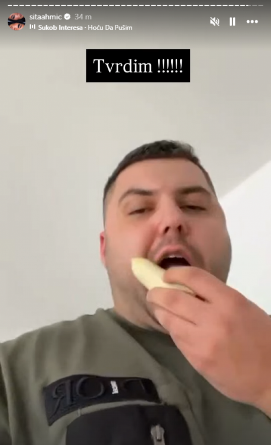 Naime, na privatnom snimku možemo videti Asmina kako jede bananu, što je navelo Ahmićevu da objavi kao dokaz da voli isti pol.