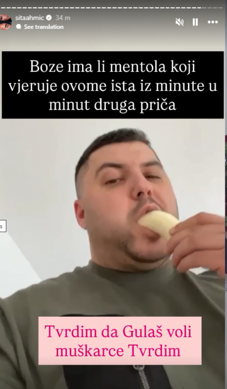 - Bože, ima li mentola koji veruje ovome išta iz minut u minut druga priča. Tvrdim da Gulaš voli muškarce! Tvrdim! - napisala je Sita na Instagramu.