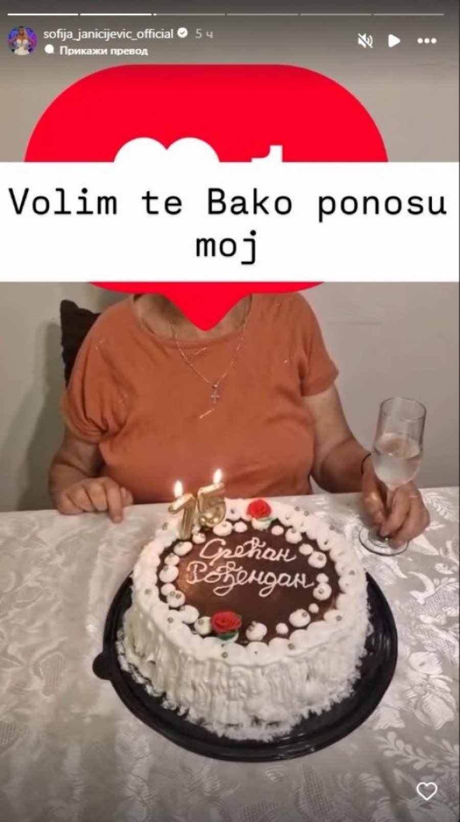 Bivša učesnica "Elite 8" Sofija Janjićijević podelila je kompilaciju fotografija na instagramu sa jednom od najvoljenijih osoba u njenom životu. U pitanju je njena baka, kojoj je bio rođendan, a unuka joj je to prilikom priredila iznenađenje. Ona je podelila slavljeničku atmosferu u njenom porodičnom domu, te je objasnila da njena baka danas slavi rođendan, a videla se torta sa posebnom posvetom koju joj je poklonila.