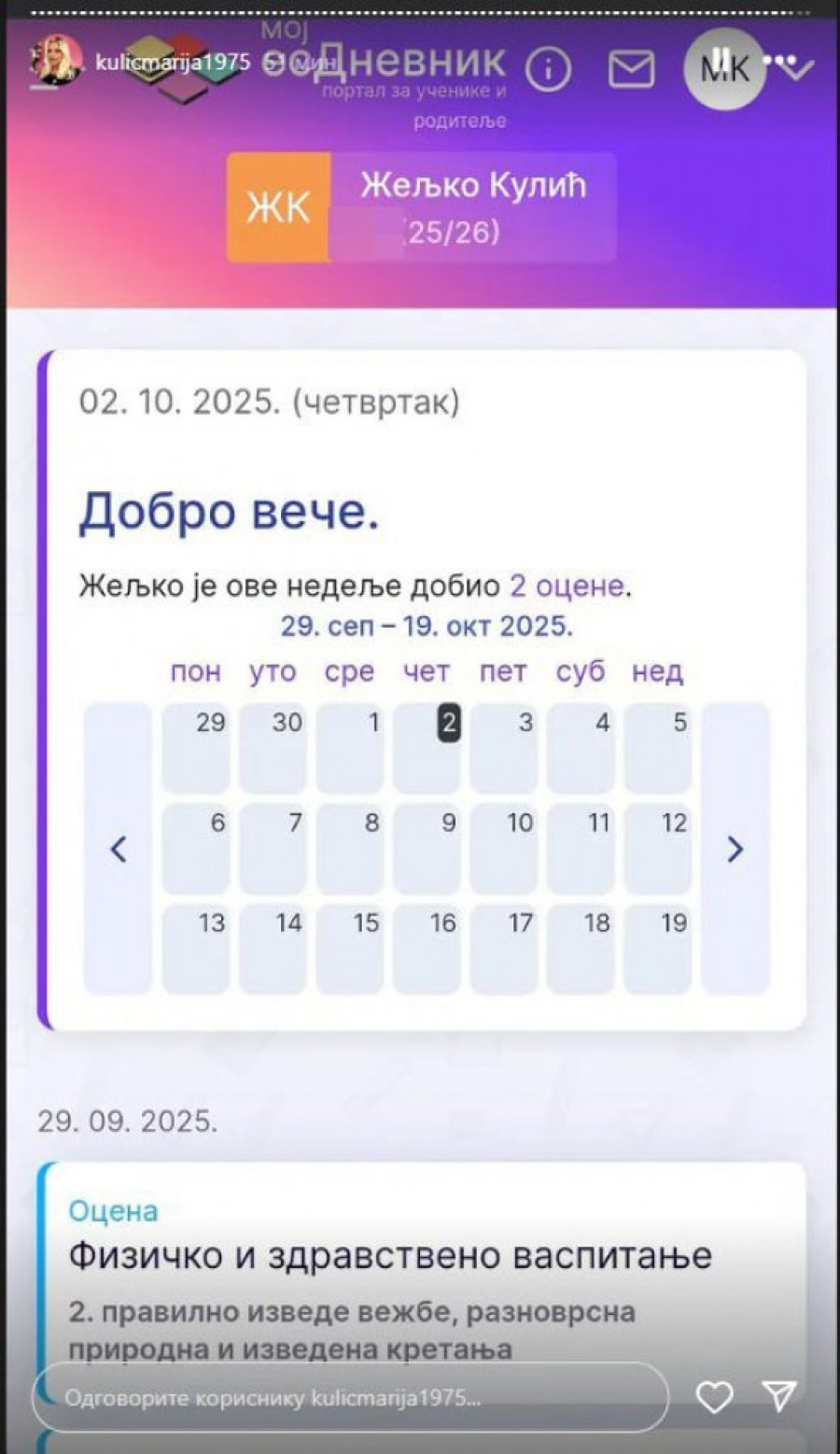 Na svom Instagram nalogu, Marija je podelila iskustva i zapažanja o tome kako se Ivan ponaša prema malom Željku. U njenom iskazu, posebno se ističe da Ivan retko provodi kvalitetno vreme sa svojim sinom, što je izazvalo brojne komentare i reakcije pratilaca.