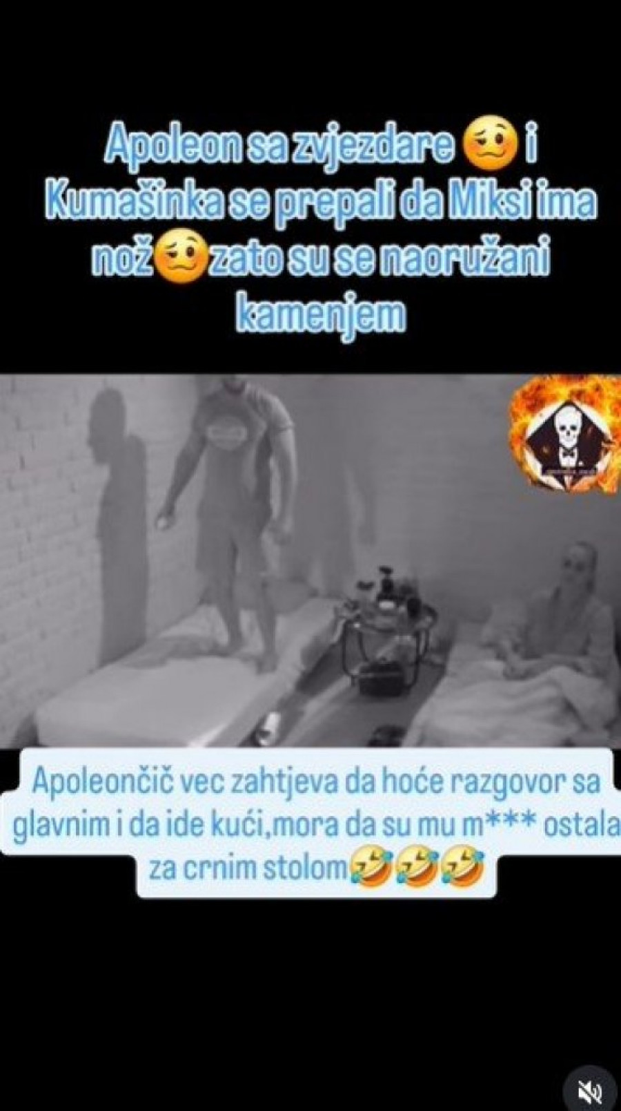 Tokom te iste večeri, iznenada je u izolaciju uletela Miljana Kulić. U trenutku kada je ušla, ona je sela u ćošak i posmatrala Rankovića i Kačavendu, što je izazvalo strah kod Anđela i Kačavende. Naime, njih dvojica su pomislili da Miljana možda nosi oštricu sa sobom, što bi bilo u suprotnosti sa pravilima rijalitija koja strogo zabranjuju bilo kakvu vrstu nasilja. U tom trenutku, Anđelo i Kačavenda su se zaštitili tako što su legli sa kamenjem, smatrajući da je to način da se obezbede u slučaju da dođe do sukoba.