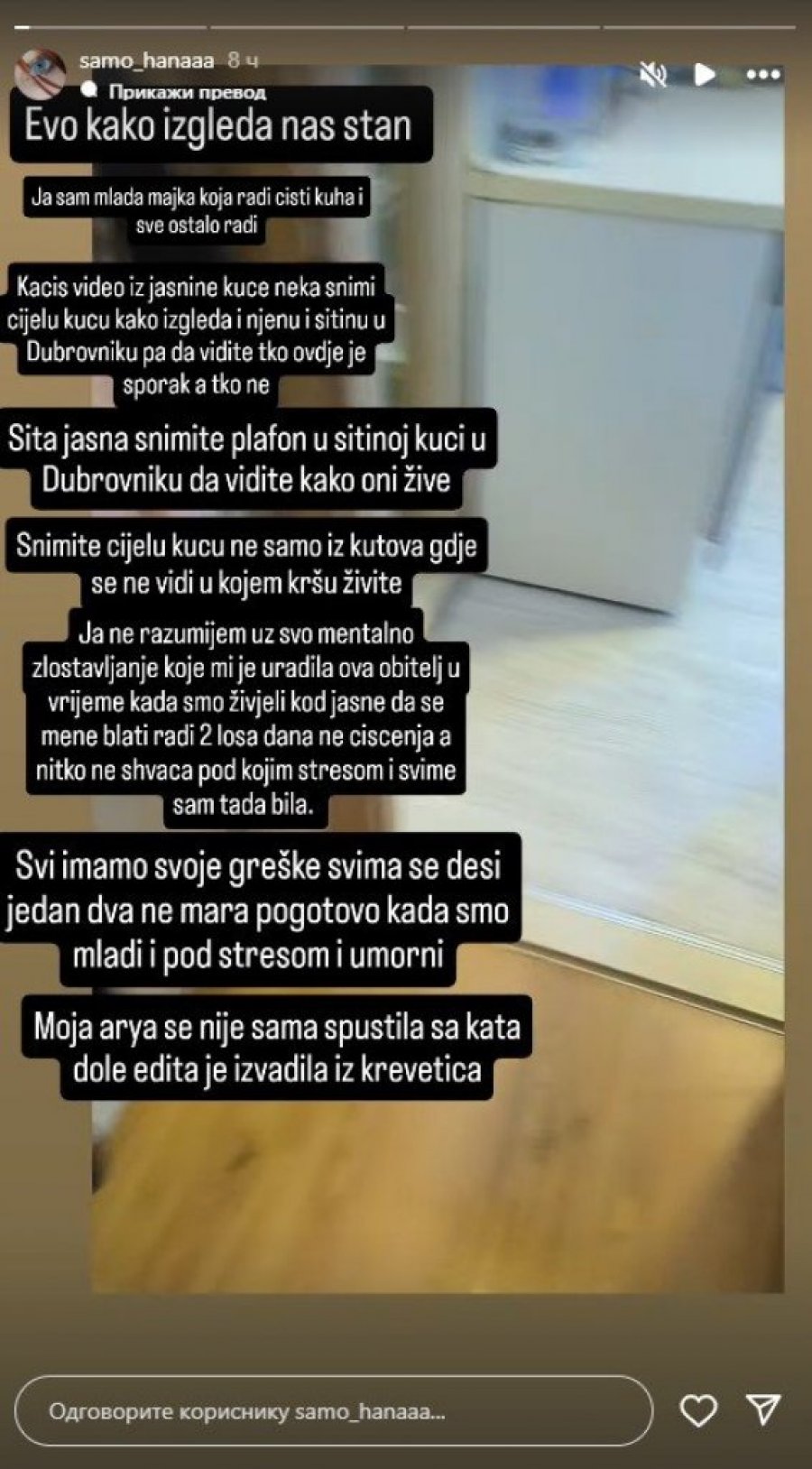 Nakon što je Hana demantovala Sitine optužbe da su aljkavi i da dete odgaja u lošim uslovima snimcima na kojima se vidi da je sve besprekorno, usledili su kontranavodi da je stan specijalno sredila sada, samo za snimanje.