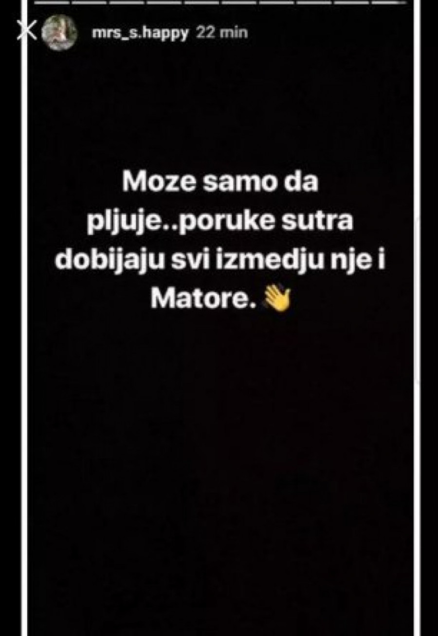 - Može samo da pljuje... Poruke sutra dobijaju svi, između nje i Matore - objavila je Sanja na svom Instagramu, što je videla i Anabela, pa joj je brže-bolje zapretila.