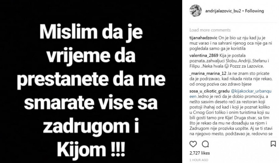 Foto: instagram.com/andrijalazovic_bu2Iako su mnogi mislili da će joj Andrija preći preko ovoga, on je danas svima stavio do znanja da je Kockarova za njega prošlost.