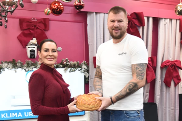Sa širokim osmesima i pozitivnom energijom, Milena i Janjuš pozirali su zajedno baš kao pravi ljubavni par, a jedino što je stajalo između njihovog prisnog zagrljaja bio je slavski kolač!