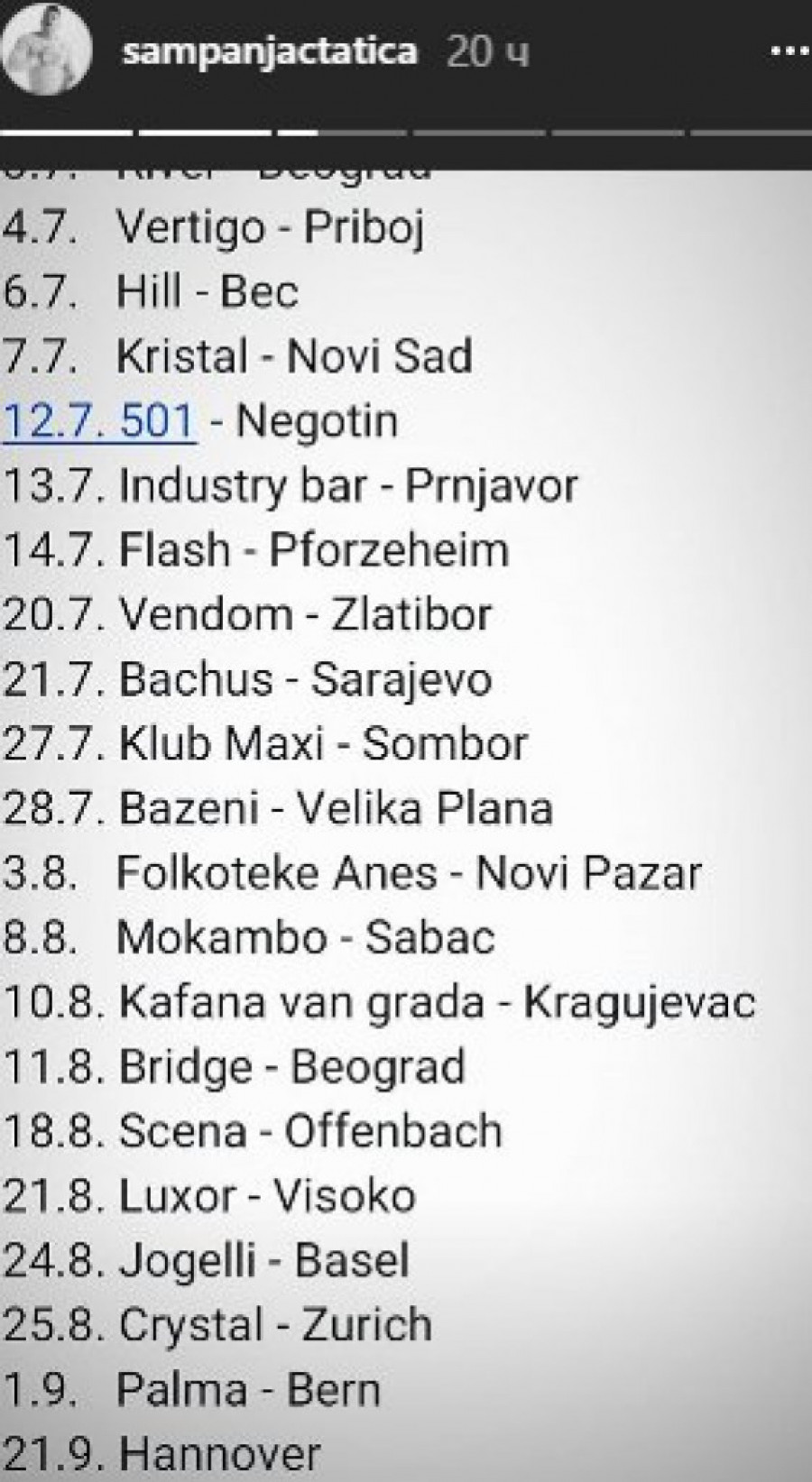 Sloba je uveliko počeo da nastupa, a sada je na svom Instagram profilu u okviru storija objavio spisak svojih nastupa za ovo leto.