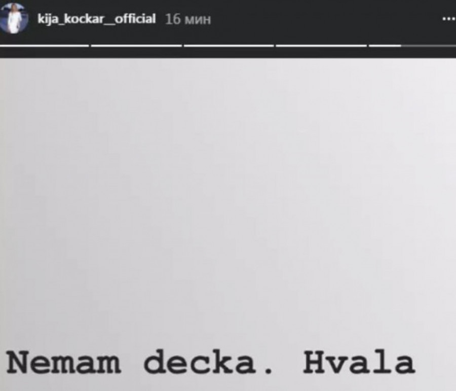 - Nemam dečka. Hvala - napisala je Kija na Instagramu.