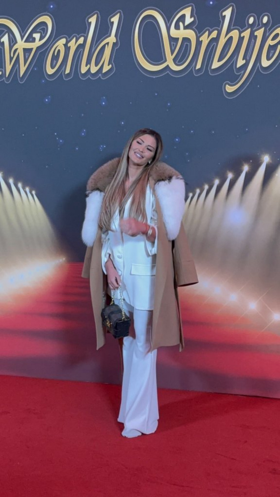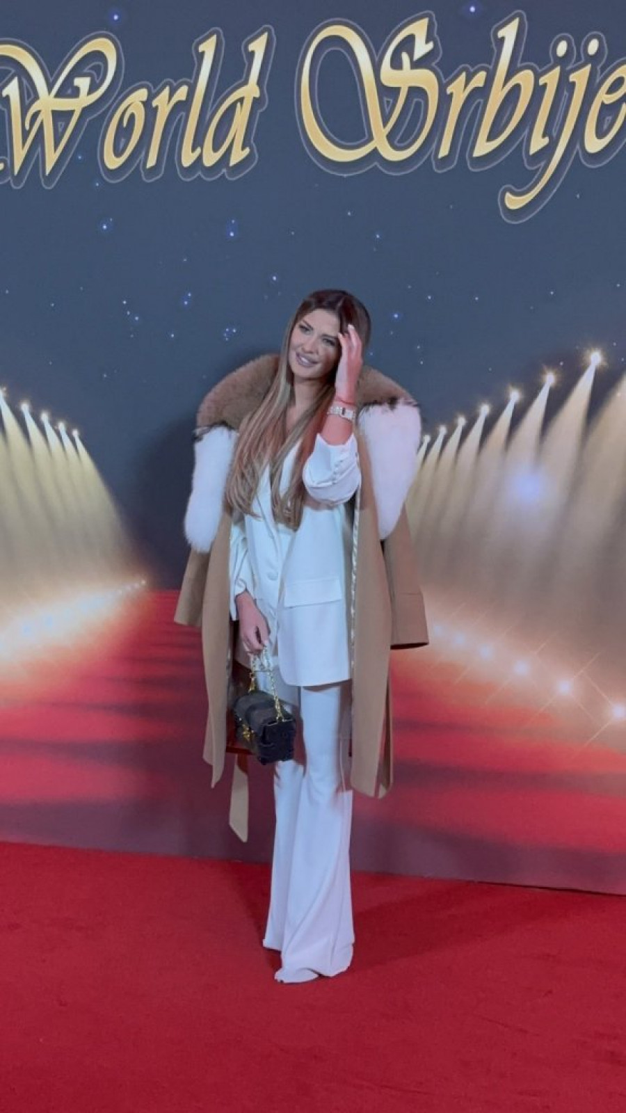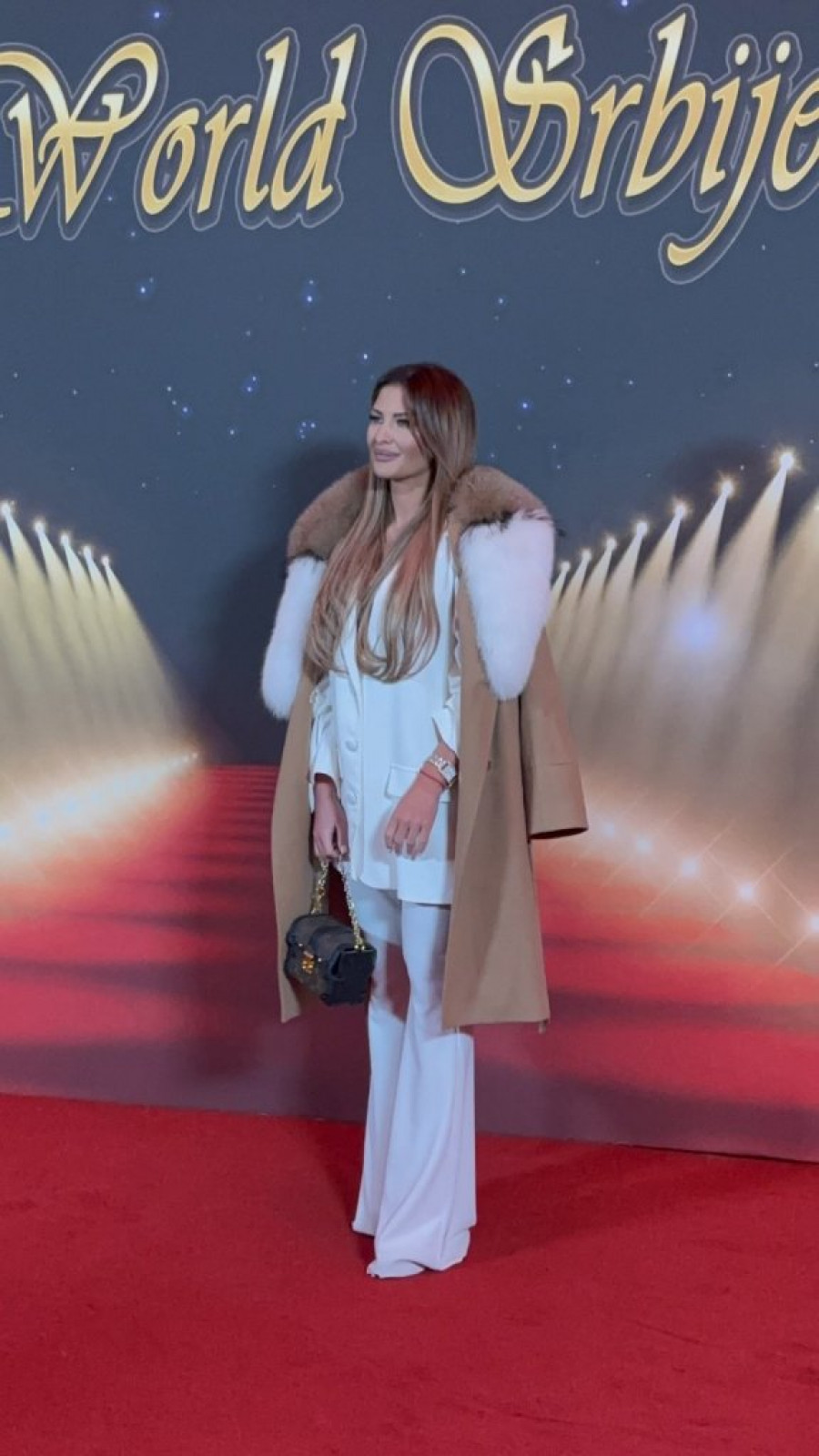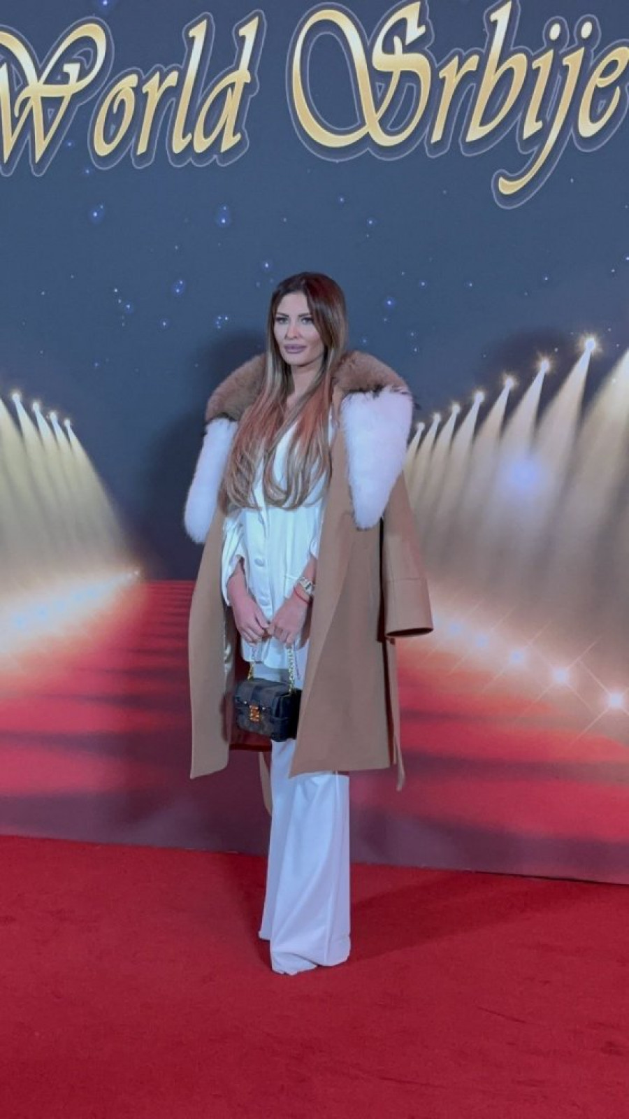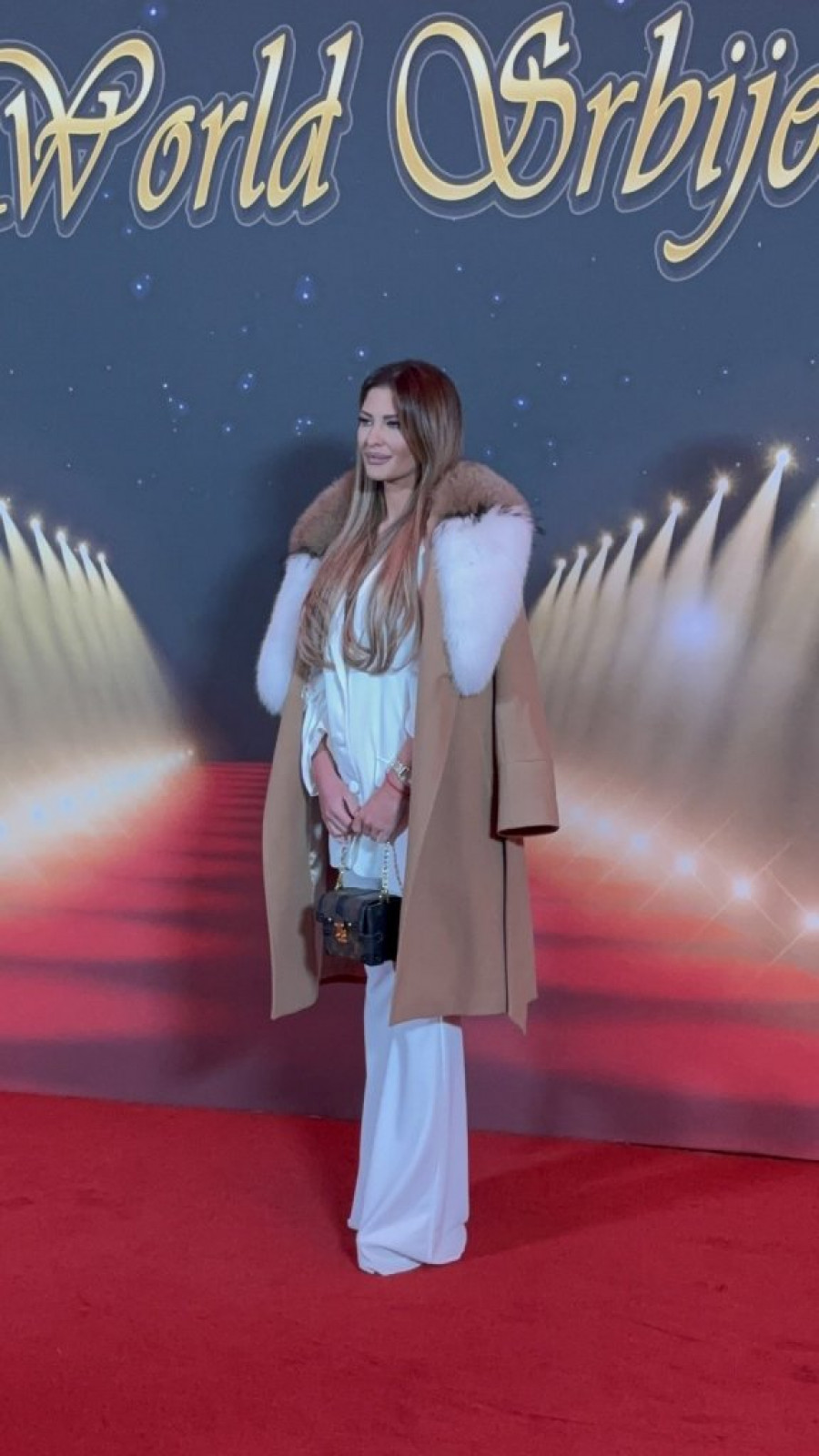 Ipak, Dušica nije bila jedina koja je oduševila modnim izborom. Voditeljka Ana Radulović odlučila se za potpuno drugačiji, ali podjednako upečatljiv stil. Ona se pojavila u belom elegantnom kompletu, koji je upotpunila kaputom u krem boji, dok je oko vrata nosila bogato krzno koje podseća na lisicu, čime je celokupnom stajlingu dala dozu luksuza i klasične elegancije. Za razliku od Dušicinog smelog i glamuroznog izdanja, Anin izgled bio je sofisticiran, otmen i sveden, što je izazvalo brojne komentare i otvorilo diskusiju među prisutnima – ko je bolje zablistao na crvenom tepihu?