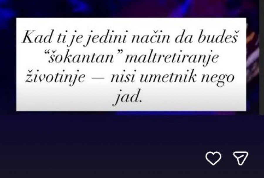- Kada ti je jedini način da budeš šokantan maltretiranje životinje - nisi umetnik, nego jad - napisala je Aleks.