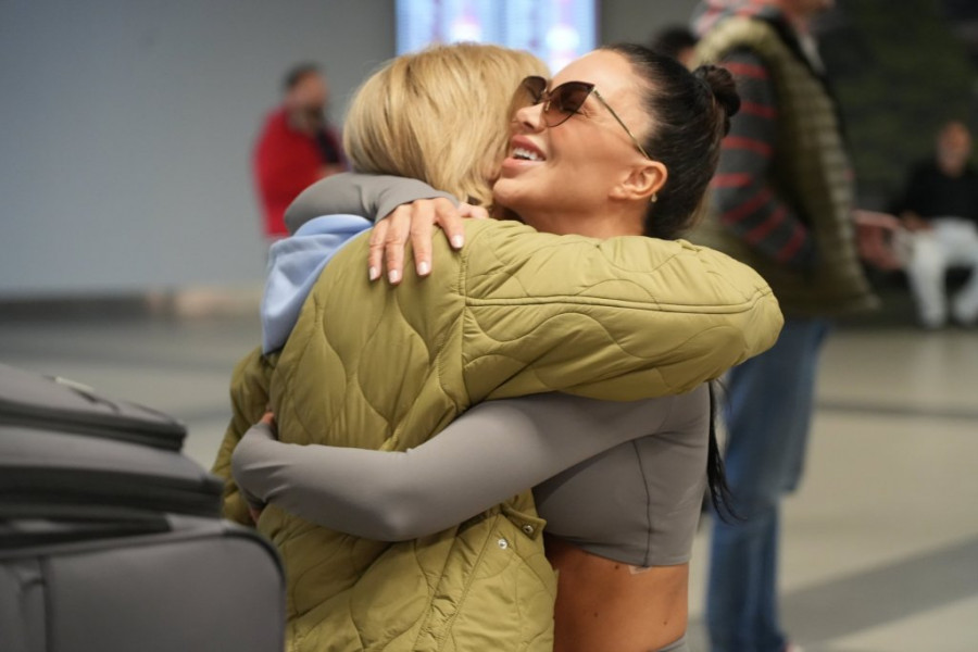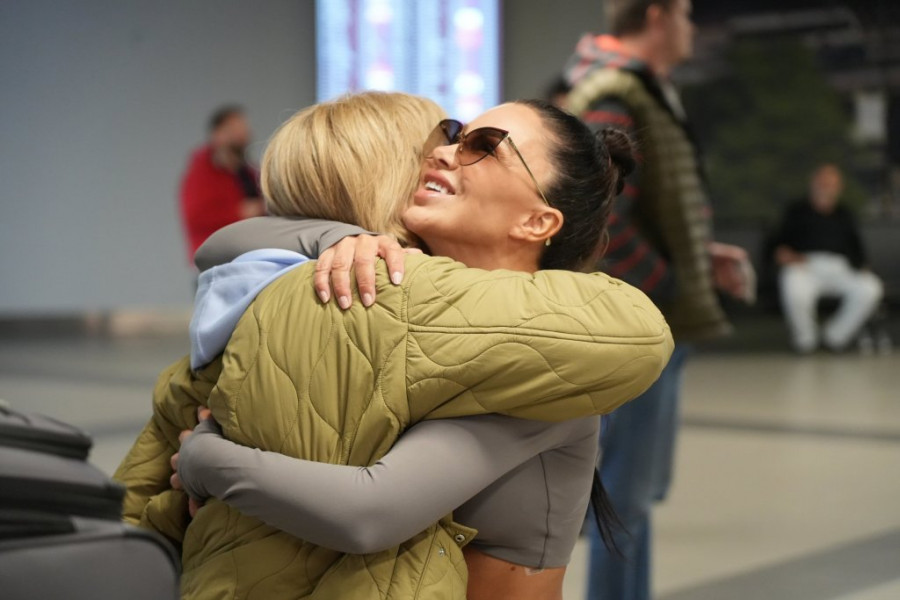 Starleta Stanija Dobrojević sletela je upravo na Aerodrom "Nikola Tesla" u Beogradu, gde smo je i sreli. Stanija je gurala četiri ogromna kofera, a sačekala ju je majka Slavica.