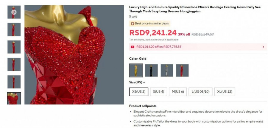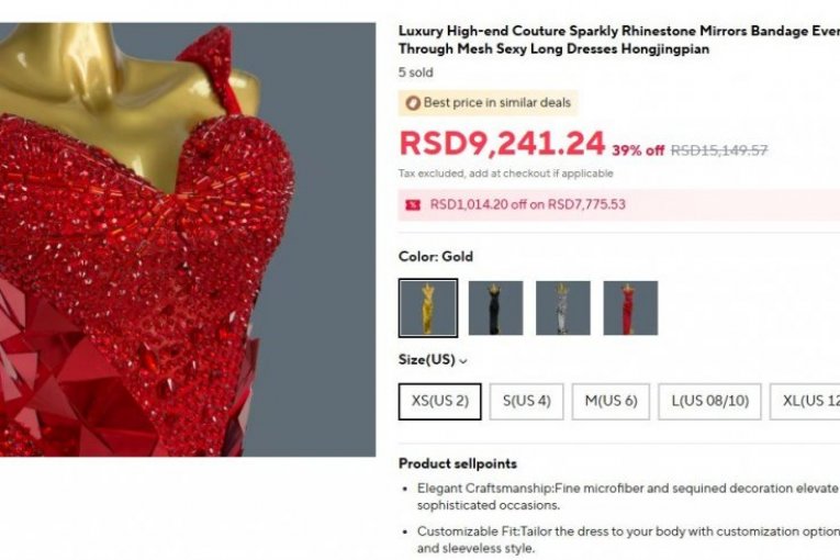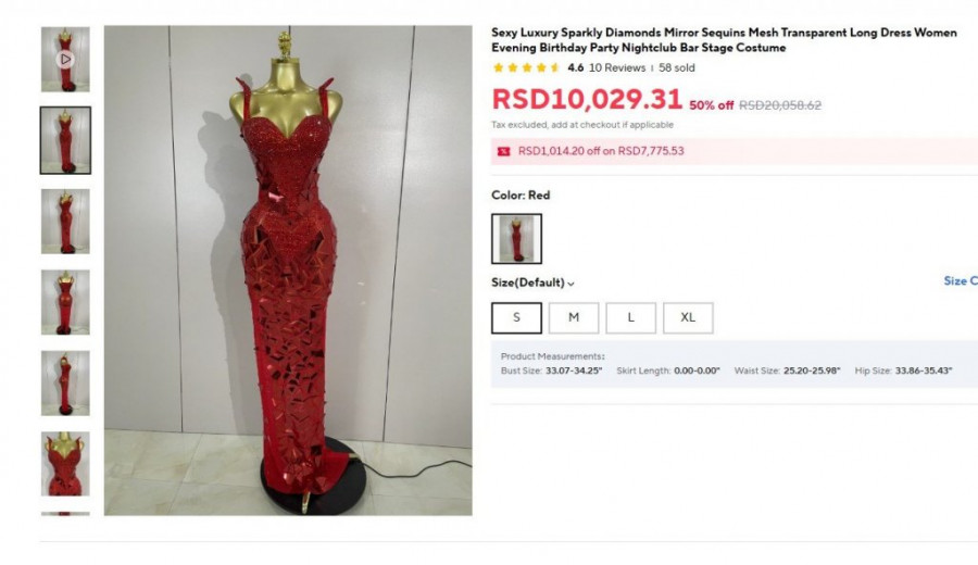 Na pomenutom sajtu identičnu haljinu smo zaista pronaši po ceni nešto većoj od 9.000 dinara, što pokazuje da je cena u stvarnosti i više nego pristupačna, naročito u odnosu na sumu koju je Stanija primila za učešće.