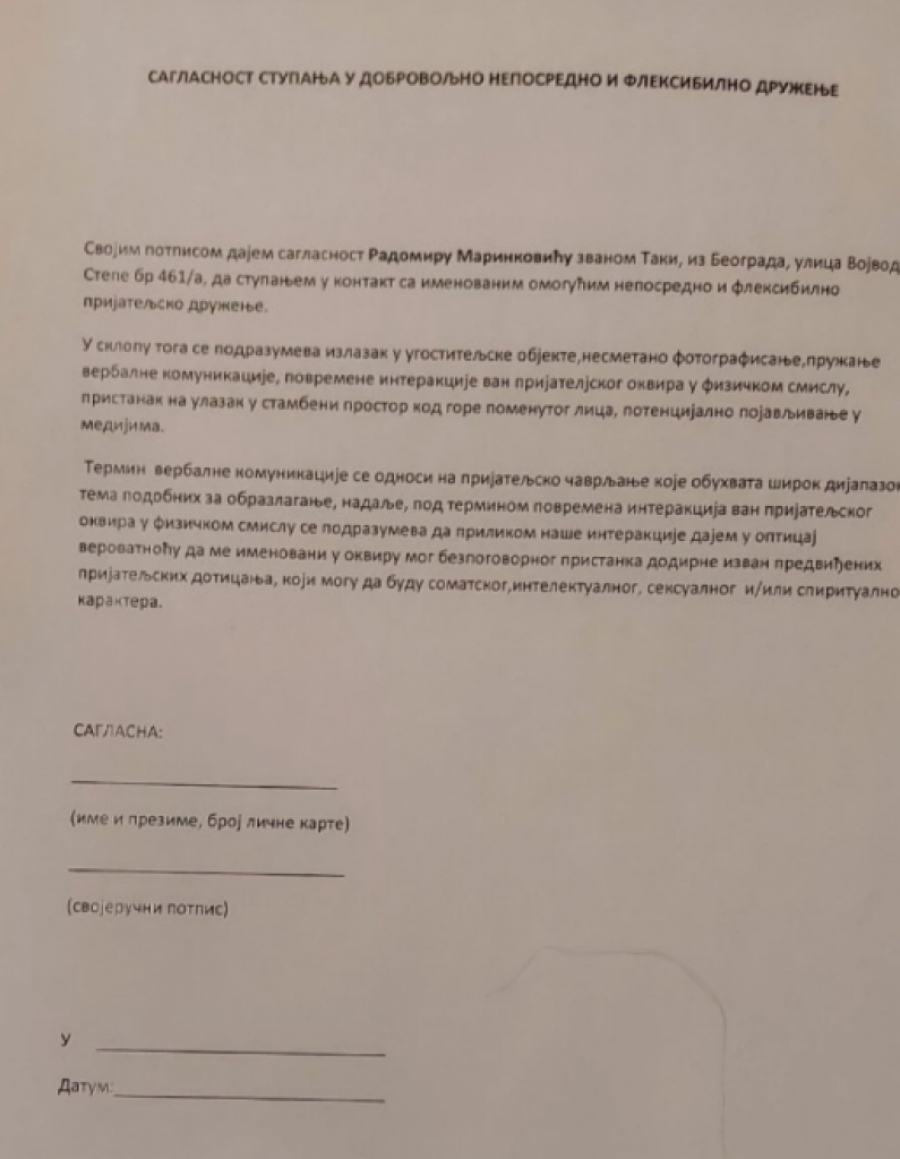 Podsetimo, svojevremeno portal Republika došao je do Takijevog ugovora, u kom smo otkrili na šta devojke koje potpišu pristaju, što možete videti u nastavku u galeriji: