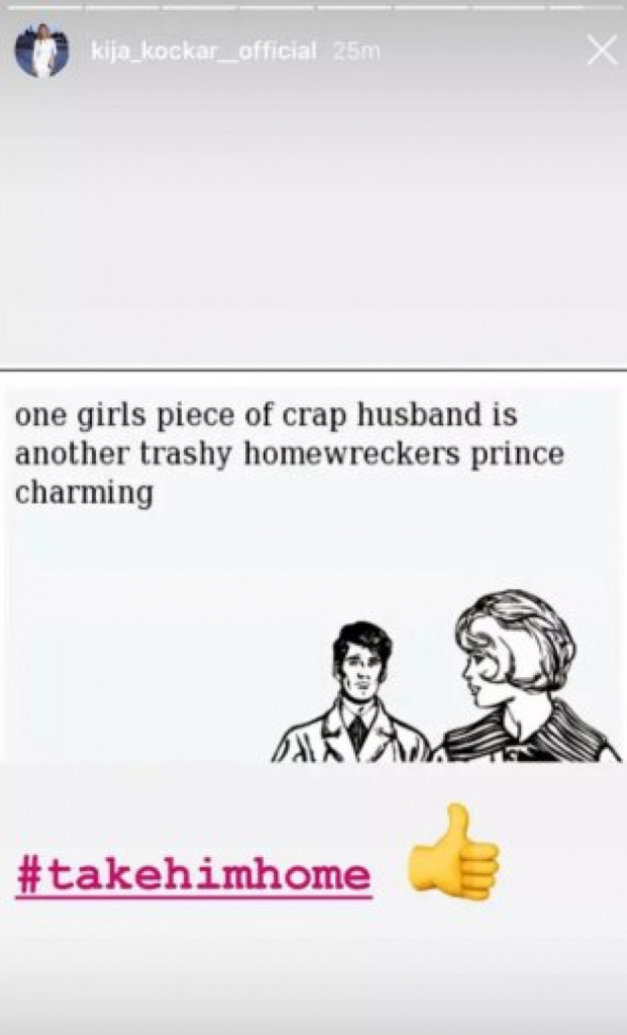 - Nečiji "usr*ni" muž je za neku drugu đubretarku brakolomnicu princ iz bajke - objavila je Kristina i dodala: "Vodi ga kući!".