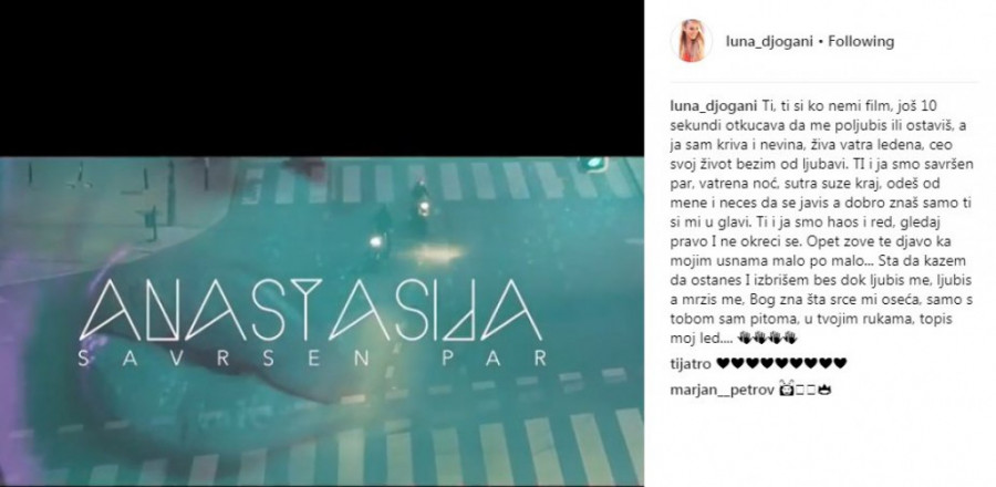 Foto: instagram.com/printscreenInteresantno je da je Đoganijeva objavila nekoliko kadrova iz spota, kao i deo ovog videa na svom profilu na instagramu te je mnogima delovalo kao da očajnički želi da joj Anastasija oprosti "grehe iz prošlosti" uprkos tome što je majka taze pevačice, Ceca Ražnatović javno podržala Luninu ljutu suparnicu Kiju Kockar, od koje je ova i izgubila bitku za prvo mesto.